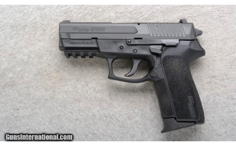 Description: This Sig Sauer Model SP2022 is a right hand double action semi-auto pistol in 9mm Cal. It has a 3.75 inch barrel with a rear serrated slide. A blade front sight and notch rear sight with 3 white sight dots. The grip is a changeable textured black polymer. It has a lower accessory rail. 9mm Parabellum SOLD Chambers: 10 round magazine. Metal Condition: Excellent. Bore Condition: Excellent. Barrels: 3.75 inch barrel with a rear serrated slide. Triggers: SA/DA Weight: 30 Oz. Sights: Blade front. Notch rear. 3 white sight dots. Item Location: Richfield, WI |