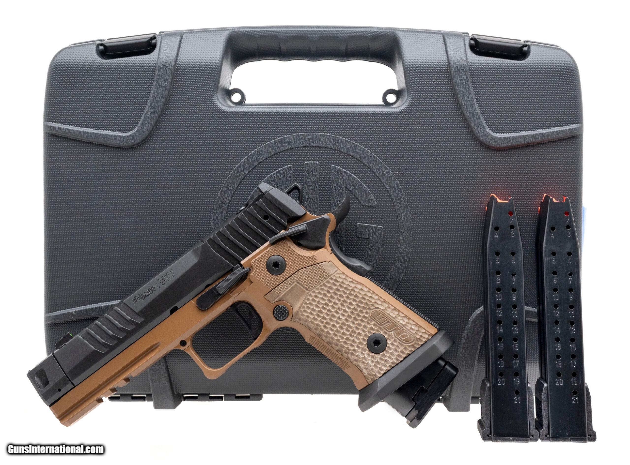 Description: "Full Size Metal Frame Pistol with a 4.4"" Bull Barrel w/MAC3HD Compensator. Sig-Loc Pro Footprint Optics Ready Slide. Fiber-Optic Front Sight, Straight Pull Trigger, Ambidextrous Magazine Release & Manual Thumb-Safety, Accessory Rail, 2-Tone Black & Coyote Nitron Finish, and Coyote G10 Grips. Accepts P320 Magazines. Includes 3-21rd Magazines. NEW. UPC: 798681736706 (STOCK PHOTO) Price: $2,599.95 Contact Seller |