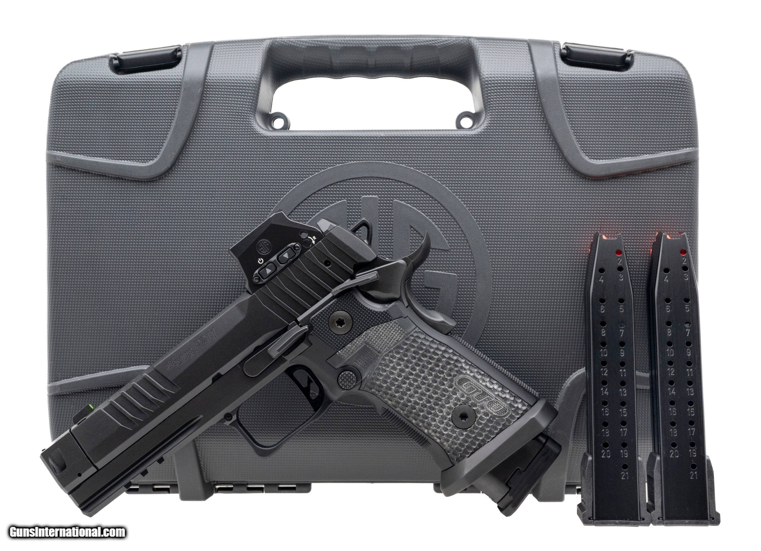 Description: "Full Size Metal Frame Pistol with a 4.4"" Bull Barrel w/MAC3HD Compensator. Romeo-X Sig-Loc Compact Red Dot Optic, Fiber-Optic Front Sight, Straight Pull Trigger, Ambidextrous Magazine Release & Manual Thumb-Safety, Accessory Rail, Black Nitron Finish, and Black G10 Grips. Accepts P320 Magazines. Includes 3-21rd Magazines. NEW. UPC: 798681731244 (STOCK PHOTO) Price: $2,899.95 Contact Seller |