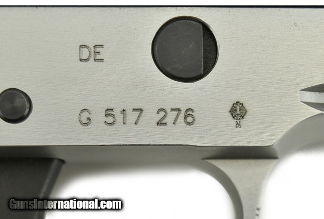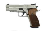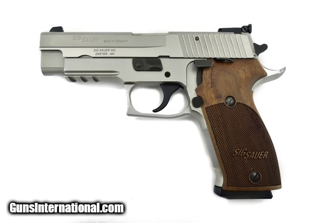 Description: Sig Sauer P220 Sport Stock .45ACP caliber pistol. Scarce and desirable Sport Stock target model German made, all stainless, with wood grips. Excellent condition.
