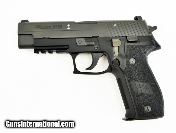 Description: Sig Sauer P226 9mm caliber pistol. MK25 model with night sights, box and extra magazine in excellent condition.