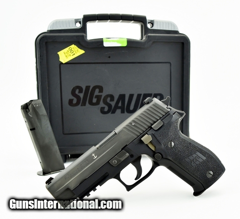 Sig Sauer P226 9mm caliber pistol. MK25 model with night sights, box and extra magazine in excellent condition.
