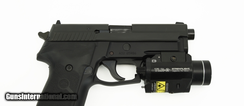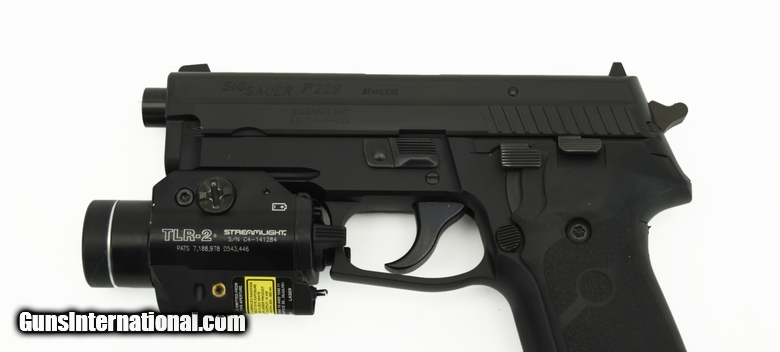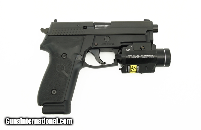 Sig Sauer P229 .40 S&W caliber pistol. Compact model with extended barrel, extended magazine, and Streamlight TLR-2 laser/light combination.