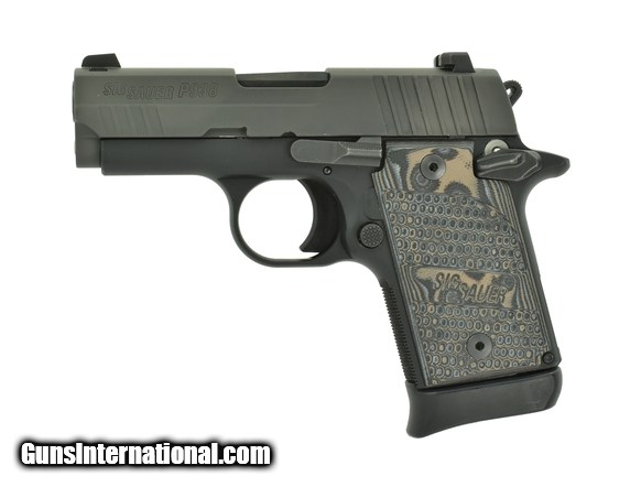 Description: Sig Sauer P938 9mm caliber pistol. Pocket pistol with night sights and ambi safety in excellent condition.