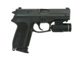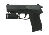 Sig Sauer SP2022 9mm caliber pistol. Polymer duty pistol with night sights, TLR-3 weapon light, box, and extra magazine in excellent condition.