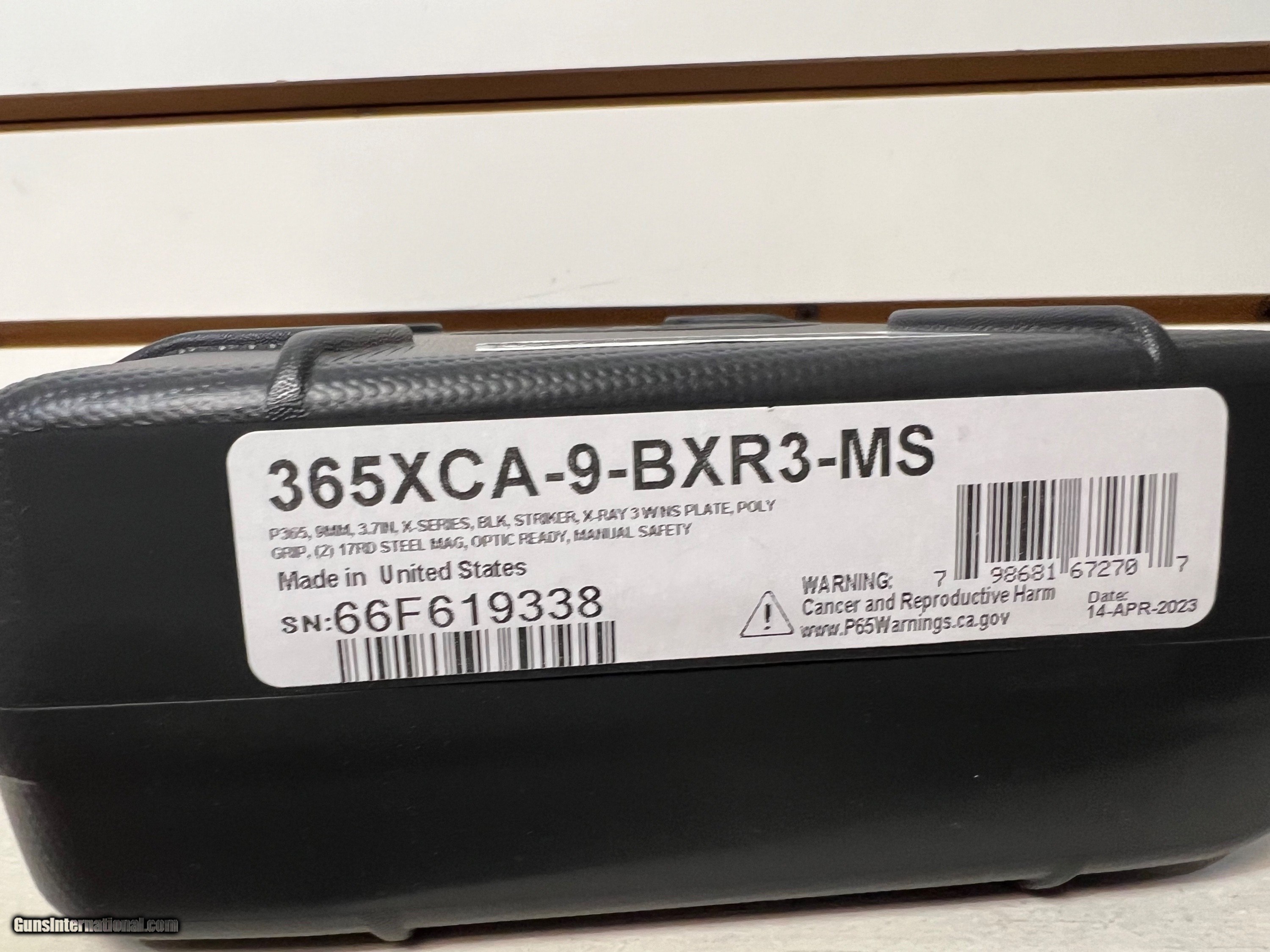 Description: UPC 798681672707 MPN 365XCA-9-BXR3-MS Brand Sig Sauer Main Model Sig Sauer SIG P365X Model P365X Macro w/Manual Safety Caliber 9mm Capacity 17 Rnds Type Handgun Action Striker Fired Finish Black Sight XRay3 Day/Night Sights Safety Manual Thumb Barrel Length 3.7" Weight 22 oz Number Of Mags 2 Buyer pays shipping Millers Gun Center Located in New Castle, Delaware "Home of TAX-Free shopping" No Credit Card Fees Send Gun international inquiry and then call 302-328-9747 to complete your purchase SOLD Handgun Caliber: 9x19mm Parabellum (9mm Luger, 9x19mm NATO) Manufacturer: Sig Sauer Model: 365XL Serial Number: 66F619338 |