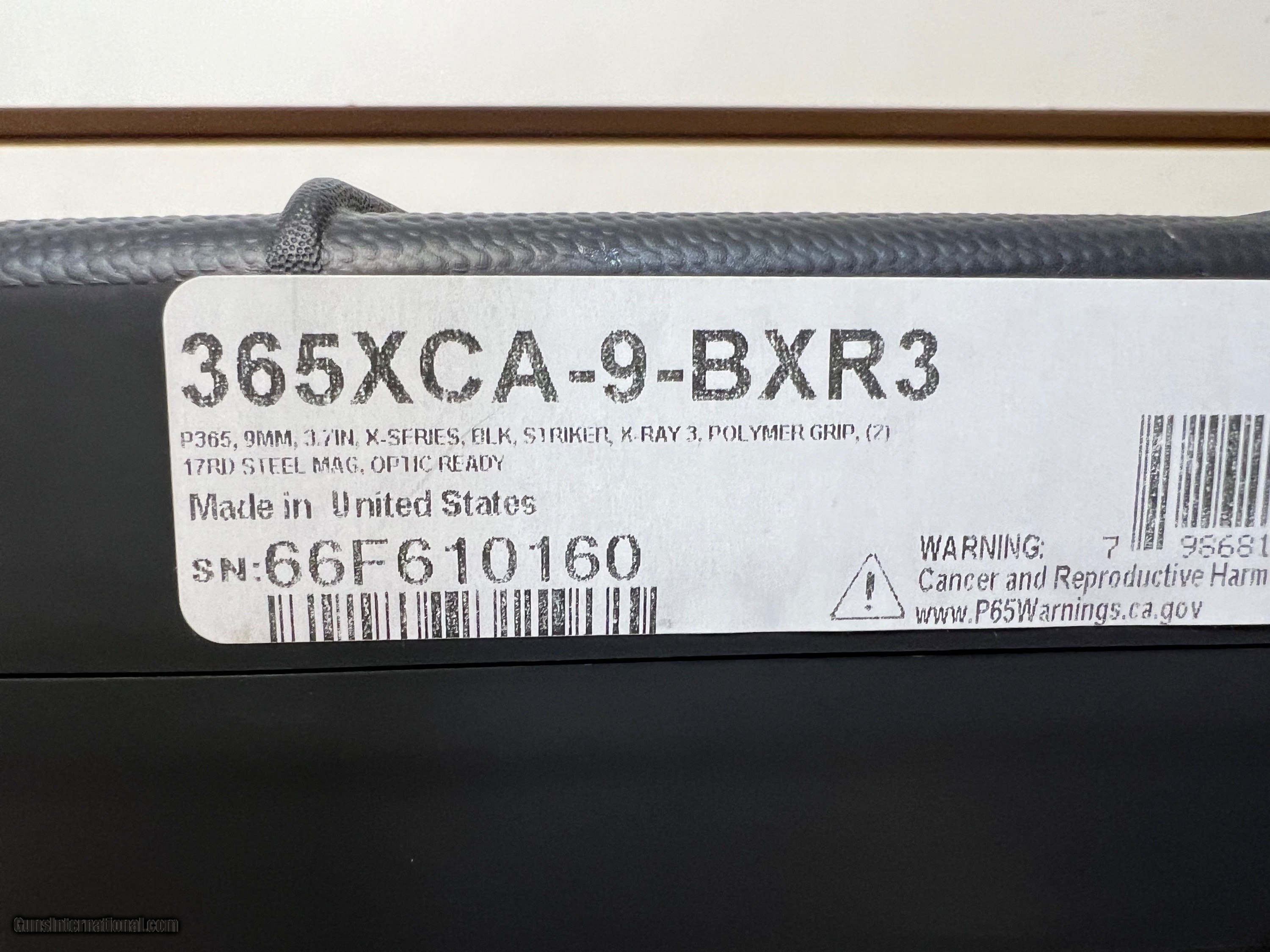 Description: New Sig Sauer P365XL 9mm No Safety UPC 798681671205 MPN 365XCA-9-BXR3 Brand Sig Sauer Main Model Sig Sauer SIG P365X Model P365X Macro Caliber 9mm Capacity 17 Rounds Type Pistol Action Striker Fired Finish Black Sight XRay3 Day/Night Sights Barrel Length 3.7" Weight 22 oz Number Of Mags 2 Buyer pays shipping Millers Gun Center Located in New Castle, Delaware "Home of TAX-Free shopping" No Credit Card Fees Send Gun international inquiry and then call 302-328-9747 to complete your purchase SOLD Handgun Caliber: 9x19mm Parabellum (9mm Luger, 9x19mm NATO) Manufacturer: Sig Sauer Model: P365XL Serial Number: 66F610160 |