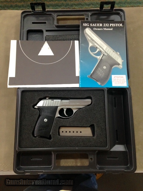 Description: This Sig Model P232 all stainless .380 pistol has been fired but is just like new in the original plastic carry case with booklet and even test target. These are now discontinued by SIG and we regret their exit from the marketplace. SOLD |