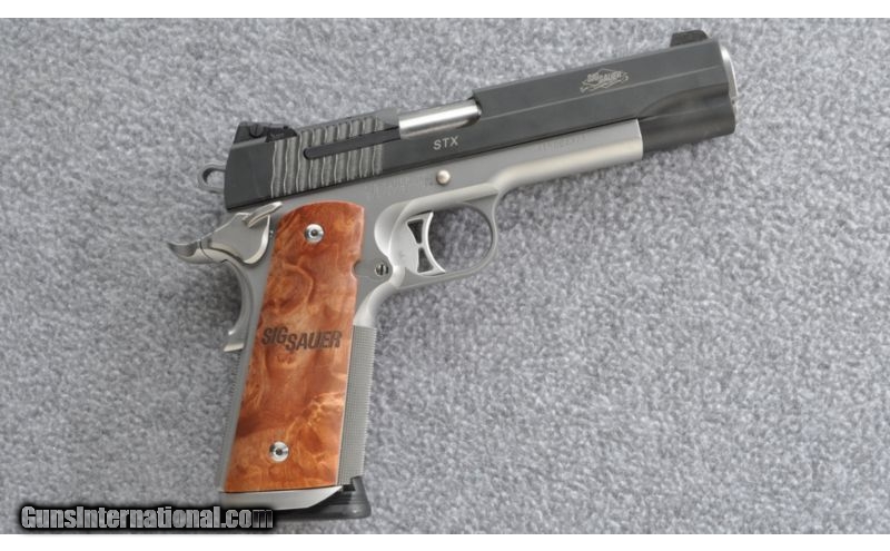 Description: SOLD Caliber Info: .45 Auto Metal Condition: Appears in near new condition with stainless steel magwell and Nitron stainless slide Wood Condition: Excellent condition Bore Condition: Bright and crisp Barrels: 5 Triggers: Single Action Stock: Hogue Burled Maple with SIG logo Weight: 42 oz Sights: Sig Combat Night Sights Item Location: Grand Junction, CO |