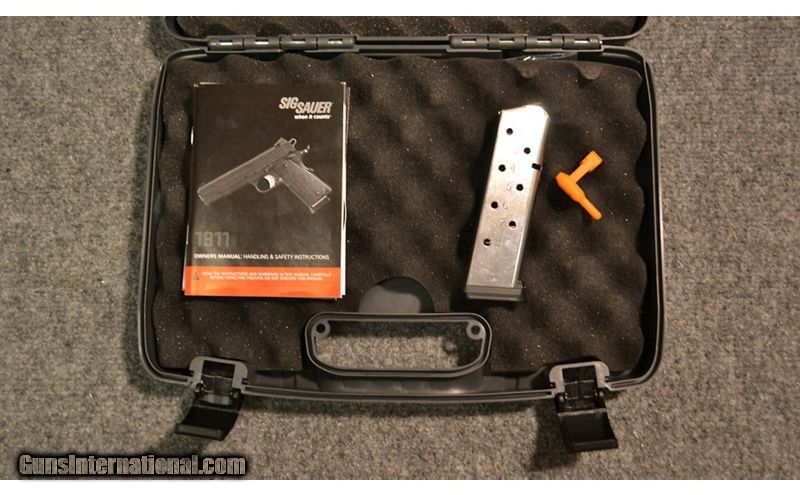 Description: The Sig Sauer 1911 STX is a highly advanced 1911 style pistol. Nitron treated stainless steel slide over a natural stainless steel frame. The frame and slide are machined to exacting tolerances and hand-fitted for enhanced reliability and accuracy. The frame features a machined, stainless steel mag well for fast and effortless reloading. Hogue burled maple grip panels are a beautiful offset to the machined finish. The front grip strap and flat mainspring housing are finely checkered for a non-slip hold. The Sig Sauer 1911 STX Semi-Auto Pistol is a superbly accurate and reliable weapon designed for tactical and personal-defense use. .45 ACP SOLD Chambers: 1 Metal Condition: Excellent Wood Condition: Excellent Bore Condition: Excellent Barrels: 5 Triggers: SAO trigger Weight: 2 1/2 lbs Sights: """U"" notch, adjustable Item Location: Thornton, CO |