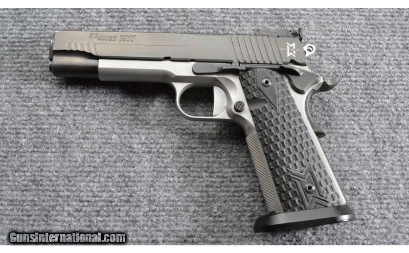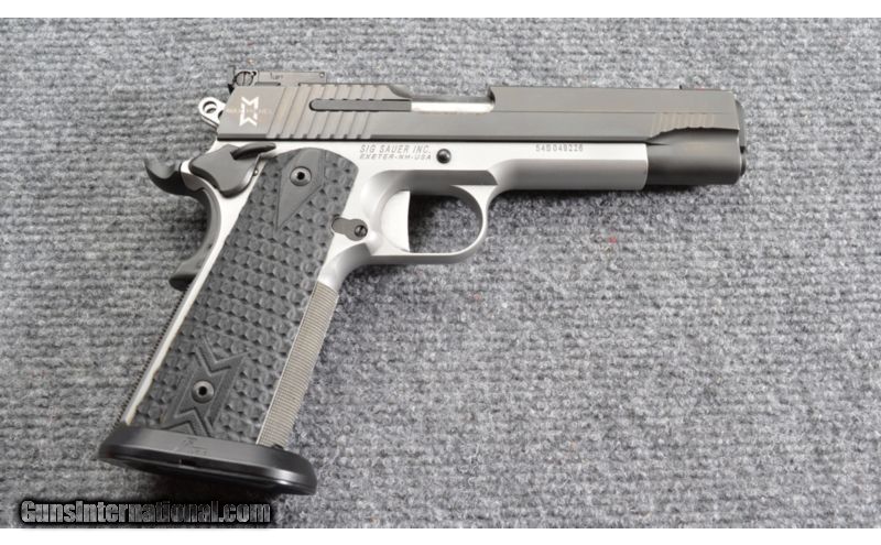 Description: This Sig Sauer Max Michel 1911 Custom pistol is beautiful to look at and a joy to hold. It features adjustable rear sights and a fiber optic front sight and Max Michel custom grips. Chambered in .45 ACP this pistol will serve well as a Three Gun pistol and is set up as a race gun. It is in excellent condition and comes with three extra magazines. This pistol will be a great addition to any firearms collection. Please review the attached photographs to appreciate the beauty of this historic firearm. SOLD Caliber Info: .45 ACP. Chambers: Semi-Auto. Metal Condition: Excellent. Wood Condition: N/A Bore Condition: Bright & shiny. Barrels: 5 Inches. Triggers: Double Action Only Stock: Max Michel Custom Grips. Weight: 2 Lbs., 5 Ounces. Sights: Adjustable white dot rear sight with a red fiber optic front sight. Extras: Three extra magazines. Item Location: Gainesville, VA |