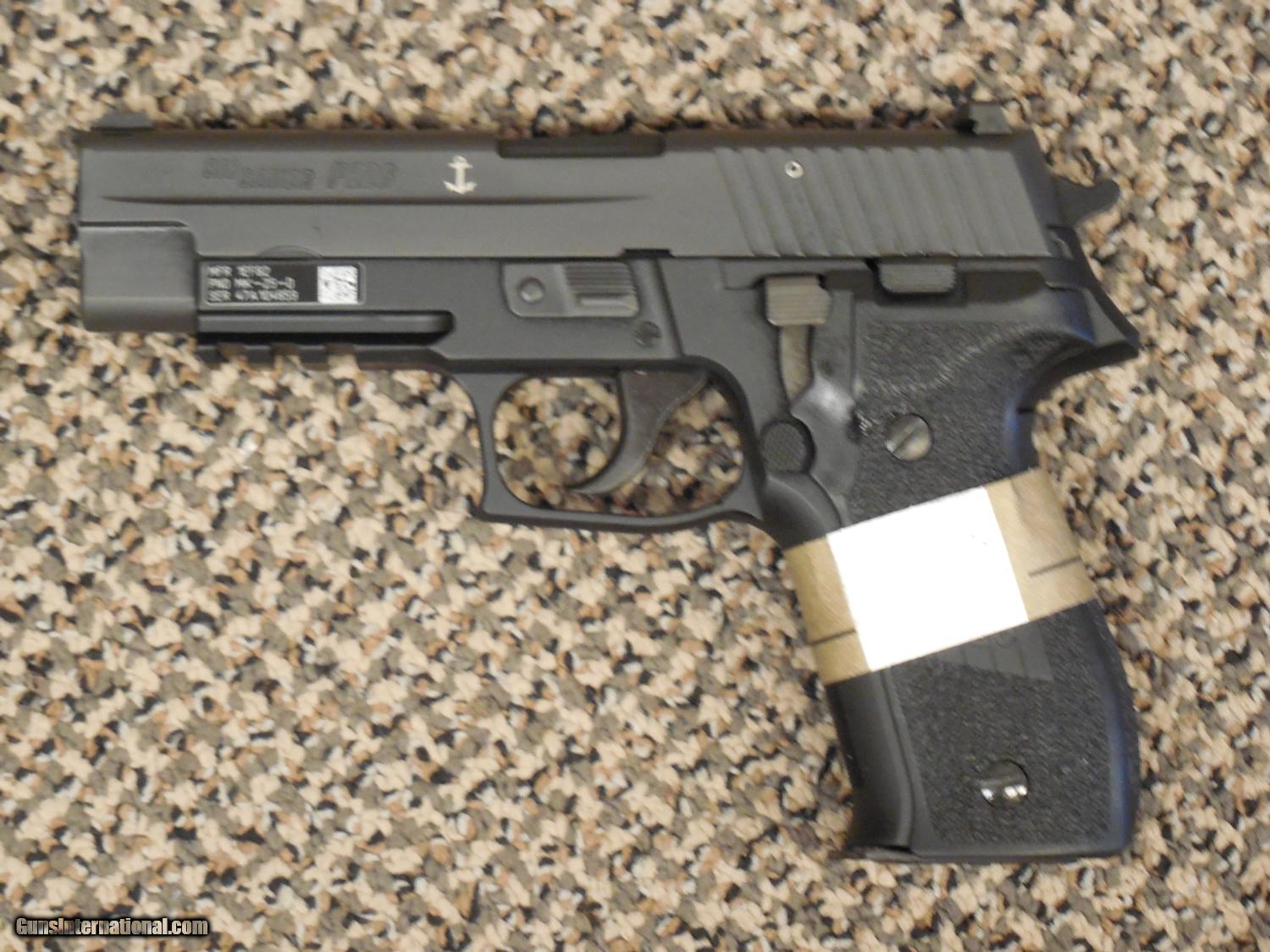Description: Here's a new SIG SAUER MK 25 "NAVY" 9 mm PISTOL. I's packed with three magazines, and is being offered for ONLY $989.99 plus $25 for shipping, handling, and insurance for CASH/CERTIFIED FUNDS/MO's. Use a credit card and add $30 to the total. SOLD |