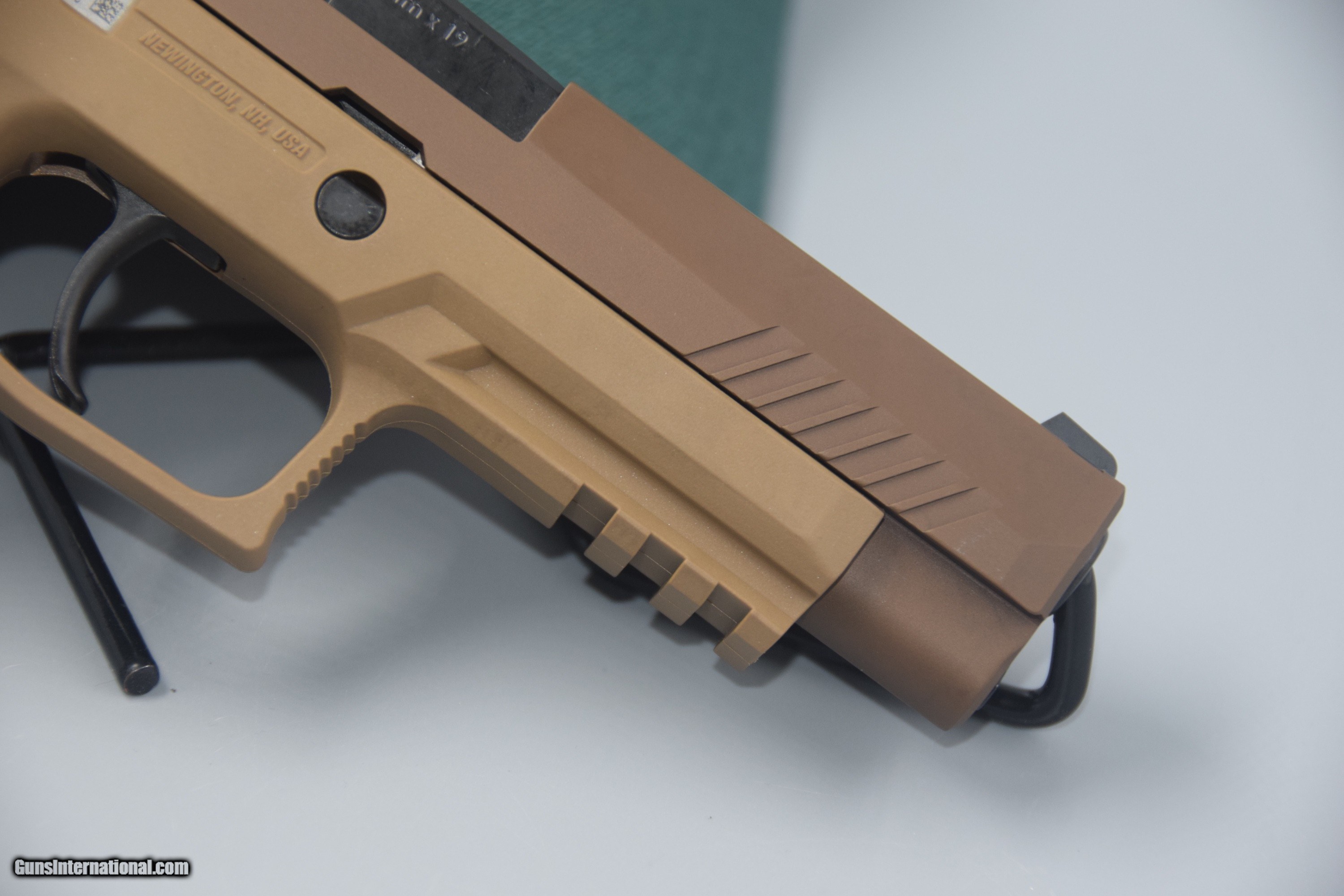 Description: Here's a new-in-box, popular full-size SIG SAUER MODEL 320F "MILITARY VERSION M-18" PISTOL IN 9 MM. This "coyote-colored" high-capacity optics-ready pistol comers with one "standard" 17-round magazine, and two high-capacity "extended" 21-round mags. It's been REDUCED to ONLY $639.95 plus $35 FLAT-RATE shipping and insurance to the EAST; and $45 to the WEST, with NO ADDITIONAL FEES for credit card use.... SOLD |
