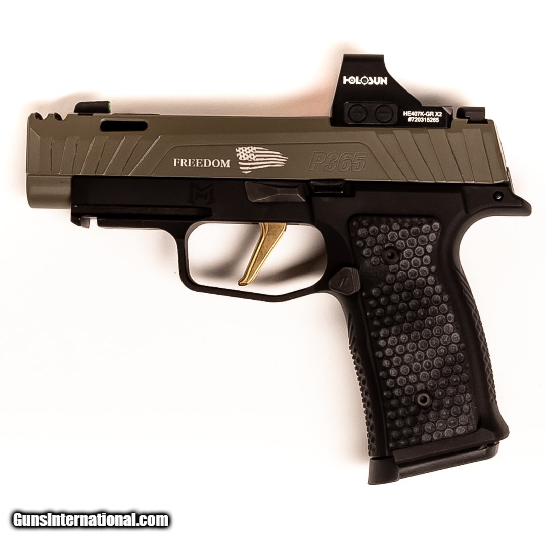 Description: Guns Listing ID: 651139 A phenomenal option for concealed carry, the Sig Sauer P365 is dependable, easy to conceal, and even easier to shoot. This little pistol is a perfect blend between compact size and impressive ammo capacity per magazine. This P365 has a Mischief Machine aluminum grip module and a Holosun 407k green dot sight. It includes the 15-round OEM magazine and two 14-round Magguts magazines. Get the best bang for your buck when you get a Certified Used Firearm . When you see the Certified Used stamp on any of our firearms, you can be confident that you’re getting exactly what you want – a gun only in very good to excellent condition and held to the highest quality standard. All Certified Used Guns come with a ‘no questions asked’ return policy . PLUS, ALL CERTIFIED USED GUNS SHIP FREE! SOLD Manufacturer: SIG SAUER Model: NV Caliber Info: 9MM LUGER (9X19 PARA) Condition: Used - Certified Barrels: 3 barrel Finish: OD GREEN/BLACK |