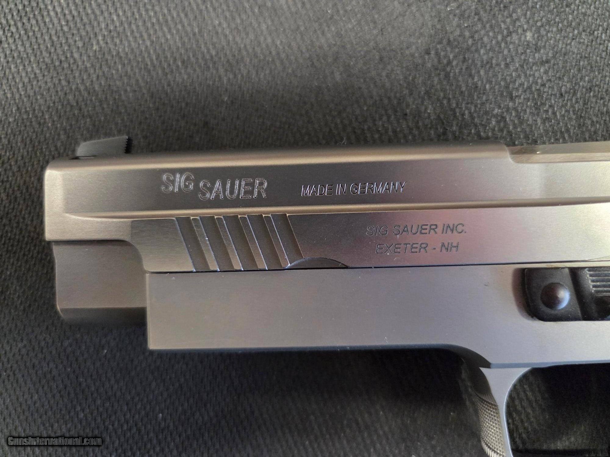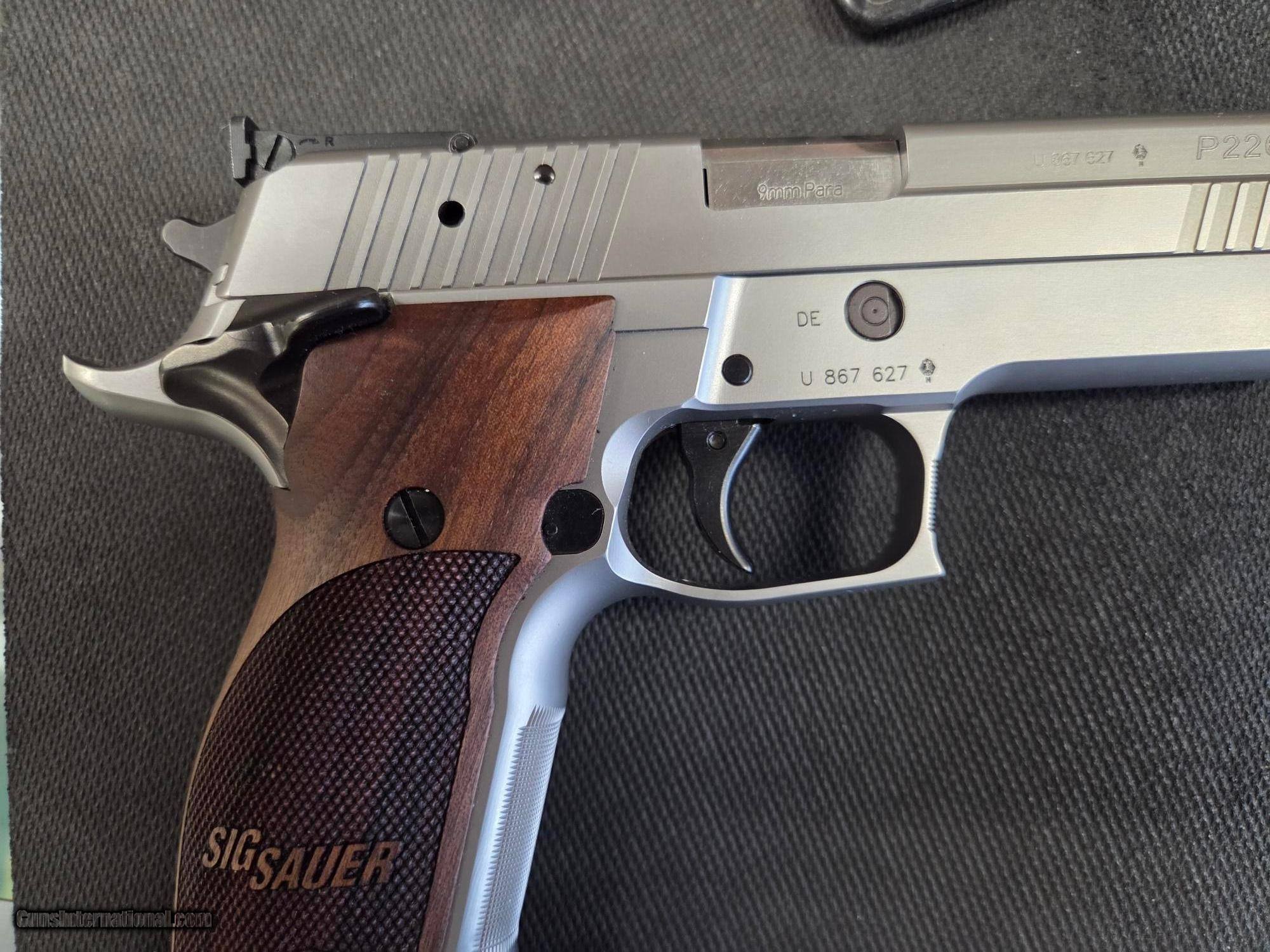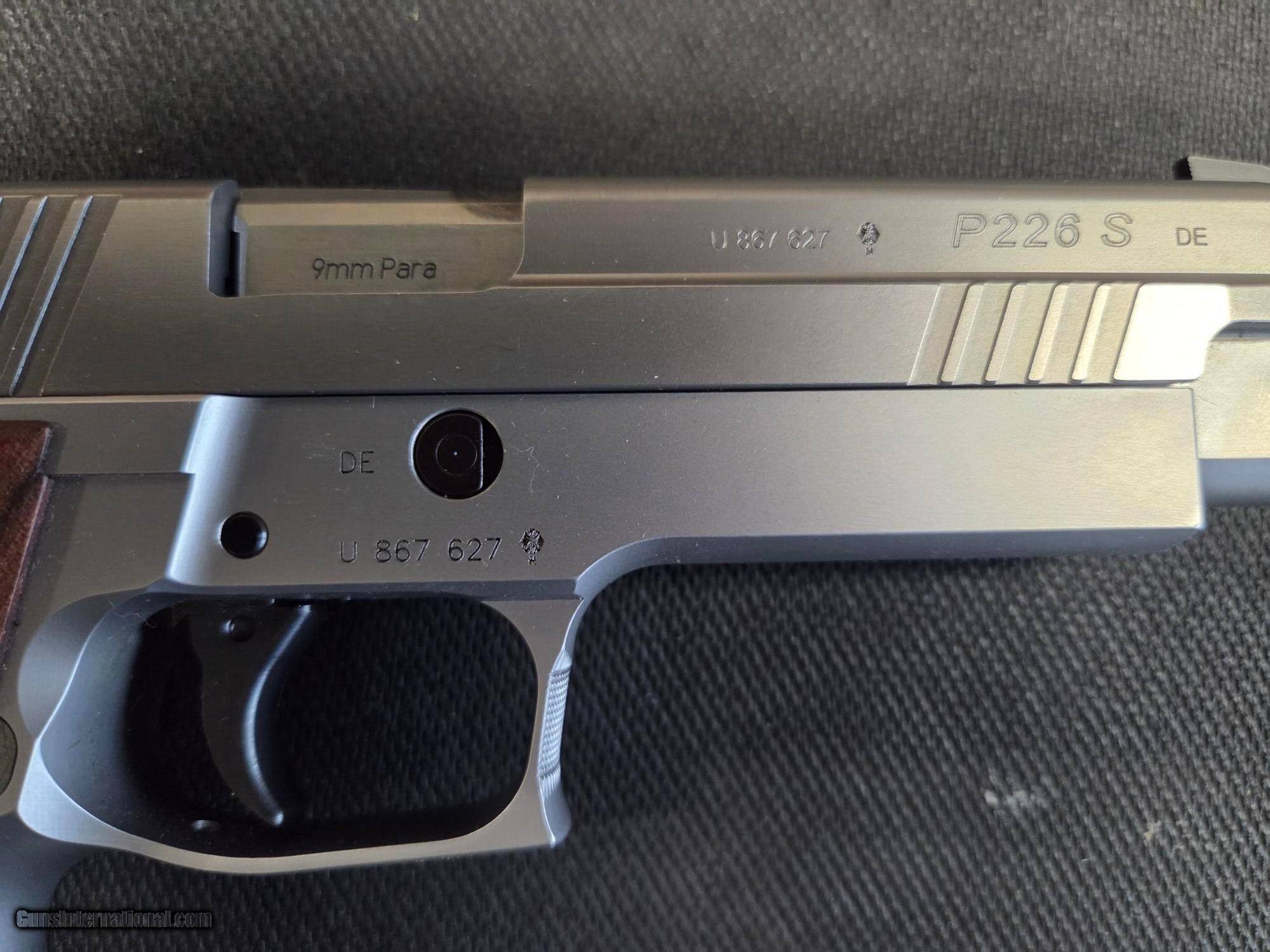 Description: Sig Sauer P226S pistol in "like new" condition. A must see! This pistol is single action only, and has had light use, from an estate and is in great condition. No obviious marks or dings on the wooden grips and the stainless steel shows no wear. This is a German made gun and come with 1 -20 round magazine and 1- 10 round. The gun weighs 2#9oz (unloaded) so will little recoil. A race gun with oversized mag. relaese. and a 2lbs trigger pull. please contact DocNeeley's gun shop for questions 360-452-2800 or by email jtrogersolypen Shipping $50 This pistol has 5 20 round magazines included for buyers that live outside of Washington Handgun Caliber: 9x19mm Parabellum (9mm Luger, 9x19mm NATO) Manufacturer: Sig Sauer Model: P226S Serial Number: U867 627 Barrel Length: 5 Condition: like new Metal Condition: no blemishes Wood Condition: new Bore Condition: new Engraving: none Item Location: Washington Price: $1,995.00 Contact Seller |