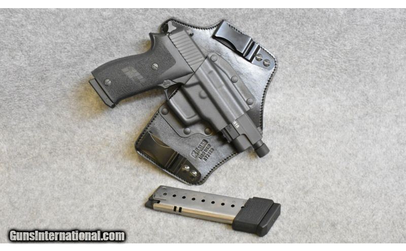 Description: 40th year anniversary model. With guide rod laser. SOLD Caliber Info: .45 ACP Metal Condition: very good condition, some light wear on the barrel hood Wood Condition: grips are in excellent condition Bore Condition: bright and sharp, some light fouling Barrels: 5 inch threaded barrel Triggers: single, smooth trigger, DA/SA with decocker Stock: textured polymer grips Weight: 2 lbs Sights: dovetailed three dot SIG night sights Extras: comes with one extra (10) round magazine, a Galco brand inside the waistband holster and the factory plastic case Item Location: Kansas City, KS |