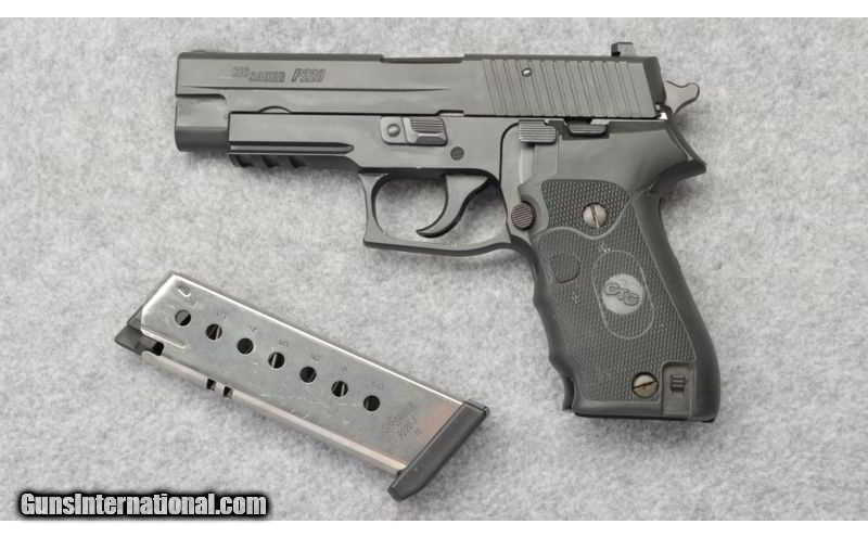 Description: Sig Sauer P220 in 45 ACP. Shows some use but still solid . Includes factory carton, manuals and extra mag. SOLD Caliber Info: 45 ACP Metal Condition: Blued slide, Alloy frame, Slight holster wear Barrels: 4 1/4 Triggers: DA/SA Stock: Crimson Trace Laser Grips Weight: 33 Ozs Sights: Three Dot Night Sights Item Location: Buda, TX |