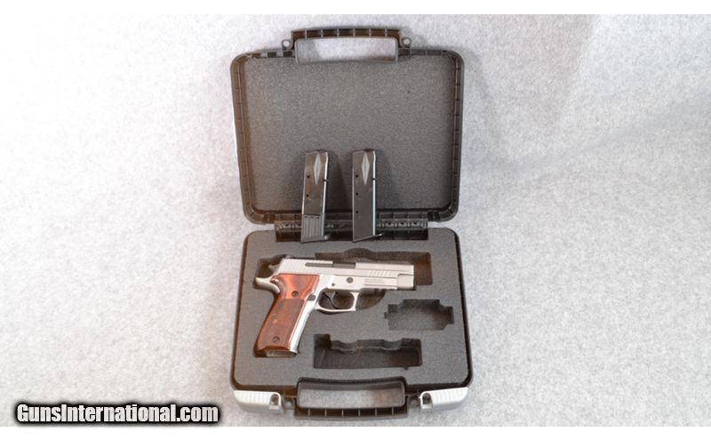 Description: Very nice looking firearm with beautiful wood grips and silver colored metal receiver. 9mm Luger SOLD Metal Condition: Excellent. Wood Condition: Excellent. Barrels: 4.4 inches. Triggers: Factory. Sights: Three dot notch in rear and blade in front. Item Location: Lone Tree, CO |