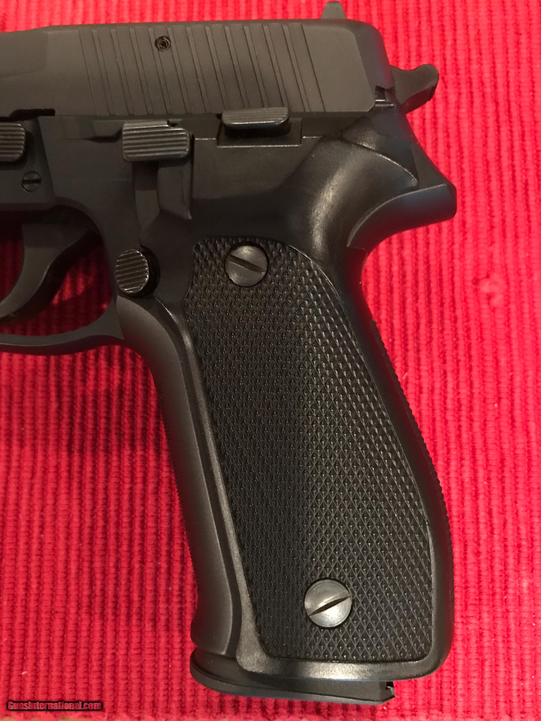 Description: Premier Sig in excellent condition with original factory case; Four 15-shot clips, belt-mounted ammo case and belt-mounted holster included; Please include $55 for shipping/handling/insurance. IT IS UP TO THE BUYER TO DETERMINE IF THE FIREARM IS LEGAL IN YOUR AREA PRIOR TO YOUR PURCHASE. THE FIREARM WILL BE SHIPPED TO THE FFL HOLDER THAT YOU SPECIFY. THEIR RELEASE TO YOU IS BASED ON YOUR PRIOR ARRANGEMENTS WITH THEM. SOLD Manufacturer: Sig Sauer Model: P226 Serial Number: S/N U537XXX Caliber Info: 9mm Parabellum Condition: Excellent Metal Condition: Excellent Bore Condition: Bright & shiny; Good rifling Barrels: 4.25 Action: SA/DA Stock: Rough textured grip panels Weight: 2,1 lbs. Sights: Adj rear bar with front dot Extras: Three 15-shot clips, holster, belt-mounted ammo case |