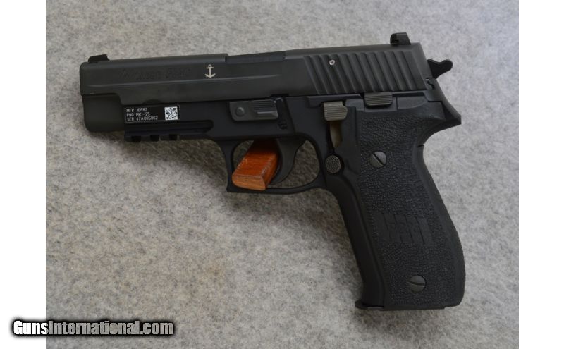 Description: Excellent, features Navy Seal Anchor, Mil-Spec 1913 rail, and bright Night Sights. Includes 15 round magazine and box. SOLD Caliber Info: 9mm Parabellum Metal Condition: Very Good Bore Condition: Very Good Barrels: 4.5" Steel Barrel Triggers: Single/Double Action Trigger Stock: Standard Sig Grips Weight: 2lbs Sights: Fixed Three Dot Siglite Night Sights Item Location: Hamburg, PA |