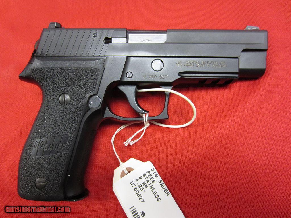 Description: Sig Sauer P226 Nitron/Stainless 9mm 4.25" (USED)-- Factory original with night sights, two magazines, and factory case. Excellent condition. SOLD |