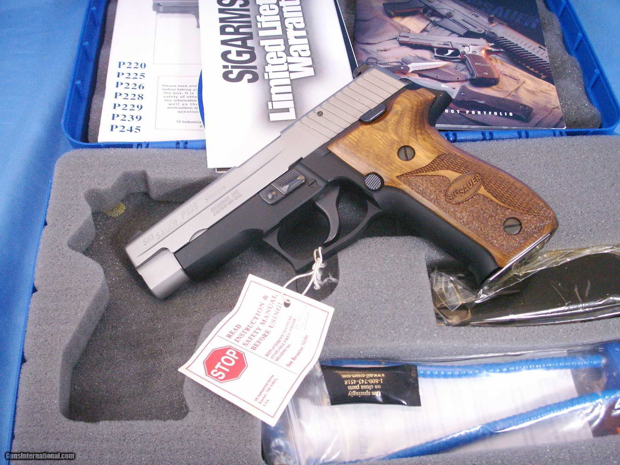 Description: SOLD PENDING FUNDS: is a Sig Sauer Special edition pistol "Honoring the Fallen" Police Officers 2007 edition. This pistol is in .40 S&W caliber with a 4.4" barrel. This is a two-tone stainless steel pistol with the frame having the Nitron black finish. The gun is rated as NIC (New in Case) unfired mint condition with the original case, extra magazine, lock, hang tag and all the paper work. This special addition was discontinued in 2008 and I have both the 2006 and this 2007 editions for sale. Please see my other listings for more collectable firearms. SOLD |
