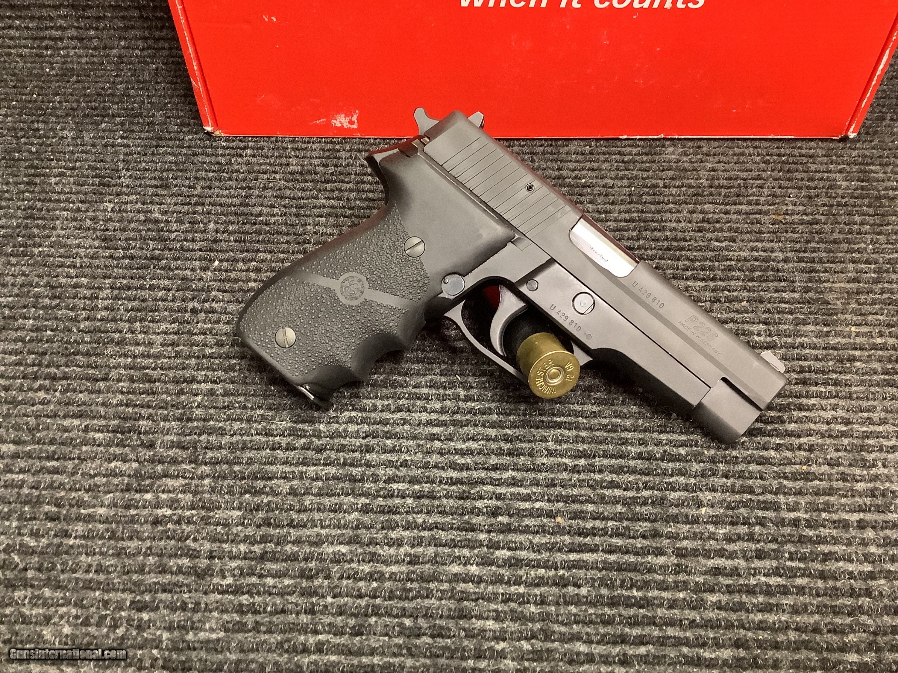 Description: For sale today is a West German Sig P226 chambered in 9mm!!!! Features include a 4 1/4" barrel, DA/SA trigger, dot and post sights and Hogue rubber grips. This gun is used and has been well cared for (see pictures). Ships with the original factory box and one magazine. IF YOU HAVE ANY QUESTIONS ...PLEASE ASK!! 3% surcharge for all credit cards. Please be sure to know your state laws when purchasing. Good Luck!!!! Buyer pays $30 shipping and handling (Continental US). SOLD Handgun Caliber: 9x19mm Parabellum (9mm Luger, 9x19mm NATO) Manufacturer: Sig Sauer Model: P226 Barrel Length: 4 1/4 Condition: Used |