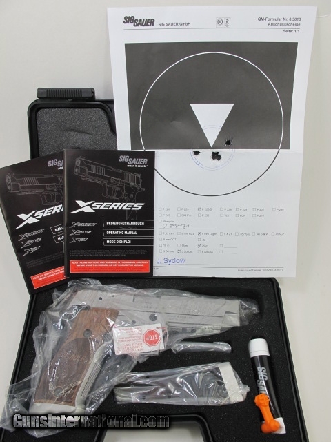 Description: Sig Sauer P220X5 X SIX X FIVE 9MM pistol,5" barrel. This is the latest,last revision of the X5 pistol,and these were only made about a year before the importation to the U.S. was shut down. This is the SIG Level One MASTERSHOP all German Made target gun. These are handmade one at a time in Germany In the SIG Mastershop by Sig's top gunsmiths. There is acurrently a BAN of firearms which has been imposed by the German Government on SIG SAUER which bars ANY guns from being shipped to The U.S. Therefore,These are impossible to get from SIG anymore.These X6 6" guns were made in very limited numbers to begin with,and have always been very hard to find,now with this ban in place,even harder. This example is in 99% As new condition,having only been lightly fired.The gun is VERY clean,and has ZERO issues,marks or detractions in either the gun itself or the beautiful NILLS wood stocks. Includes 2-19 round magazines,factory case,test target,manual,and tube of SIG grease. Get it while You can.These very well May never be imported again. NO HIGH CAPACITY MAGS TO RESTRICTED AREAS. NO California sales on this gun. Shipping is $35.00 SOLD |