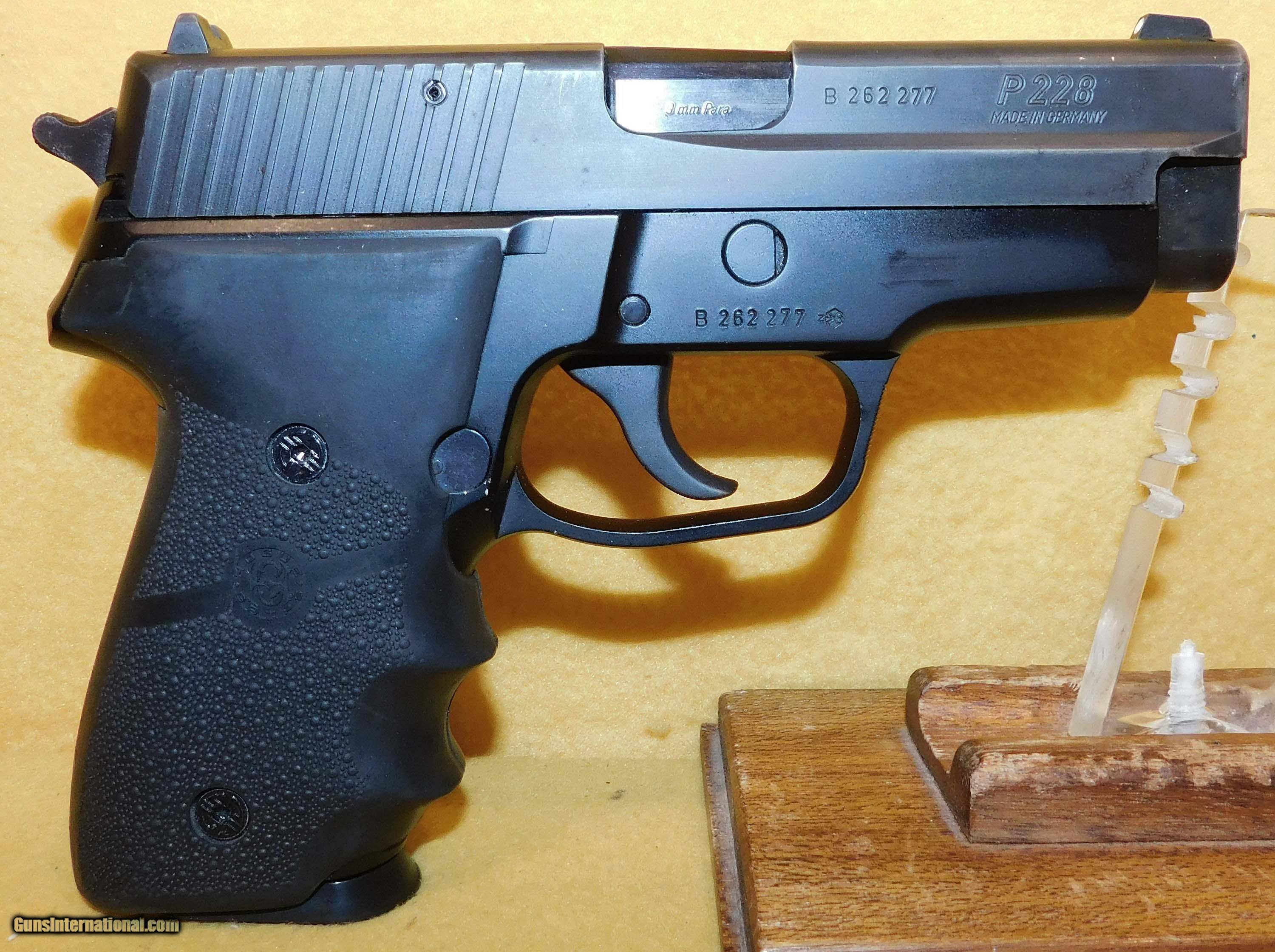 Description: SIG SAUER P228 (GERMANY) IN 9MM CAL., WITH 3 .75" BARREL. COLOR MATTE. CONDITION 95%. SERIAL NUMBER B262277. SIG SAUER MODEL P228 IN 9MM CALIBER, MIRROR BORE, GRIPS EXCELLENT, COMES WITH ORIGINAL GRIPS, THREE FACTORY MAGAZINES, HARD CASE, 95% OVERALL CONDITION, OUR STOCK # D5649 SOLD |