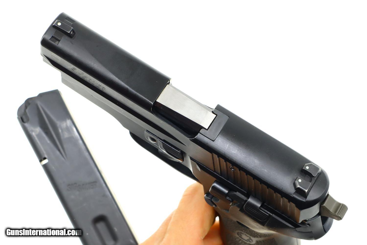 Description: Synopsis: SIG Sauer, P228, Swiss, Solothurn Police, 9mmP, B328951, I-806 Description: Standard configuration SIG SAUER P228 with nitron finished slide and early drift adjustable night sights. Left side of slide marked SIG SAUER followed by the canton symbol of Solothurn. The right side of the slide is marked with the model, along with the full serial number that is repeated on the right side of the barrel hood and right side of the frame.The left side of barrel is proofed with year code “AE” for 2004. Fitted with two piece black neoprene grips with a molded textured surface surrounding the manufacturers name. High capacity double column magazine marked SIG SAUER, the zippered spine having indicator holes marked for 5/10/13 cartridges. Condition: EXC+ original finish with wear consistent with minimal service use. Comparable condition grips. Magazine with insertional wear as photographed. Mirror bore. Perfect manual mechanics. A SIG Sauer Police variation seldom encountered in the United States. DO NOT PURCHASE IF YOU LIVE IN A STATE WHERE HIGH CAPACITY MAGAZINES ARE RESTRICTED! ~~Insured shipping fee of $55; most packages shipped using FedEx 2nd Day.~~ SOLD Manufacturer: SIG Sauer Serial Number: B328951 Caliber Info: 9mm |