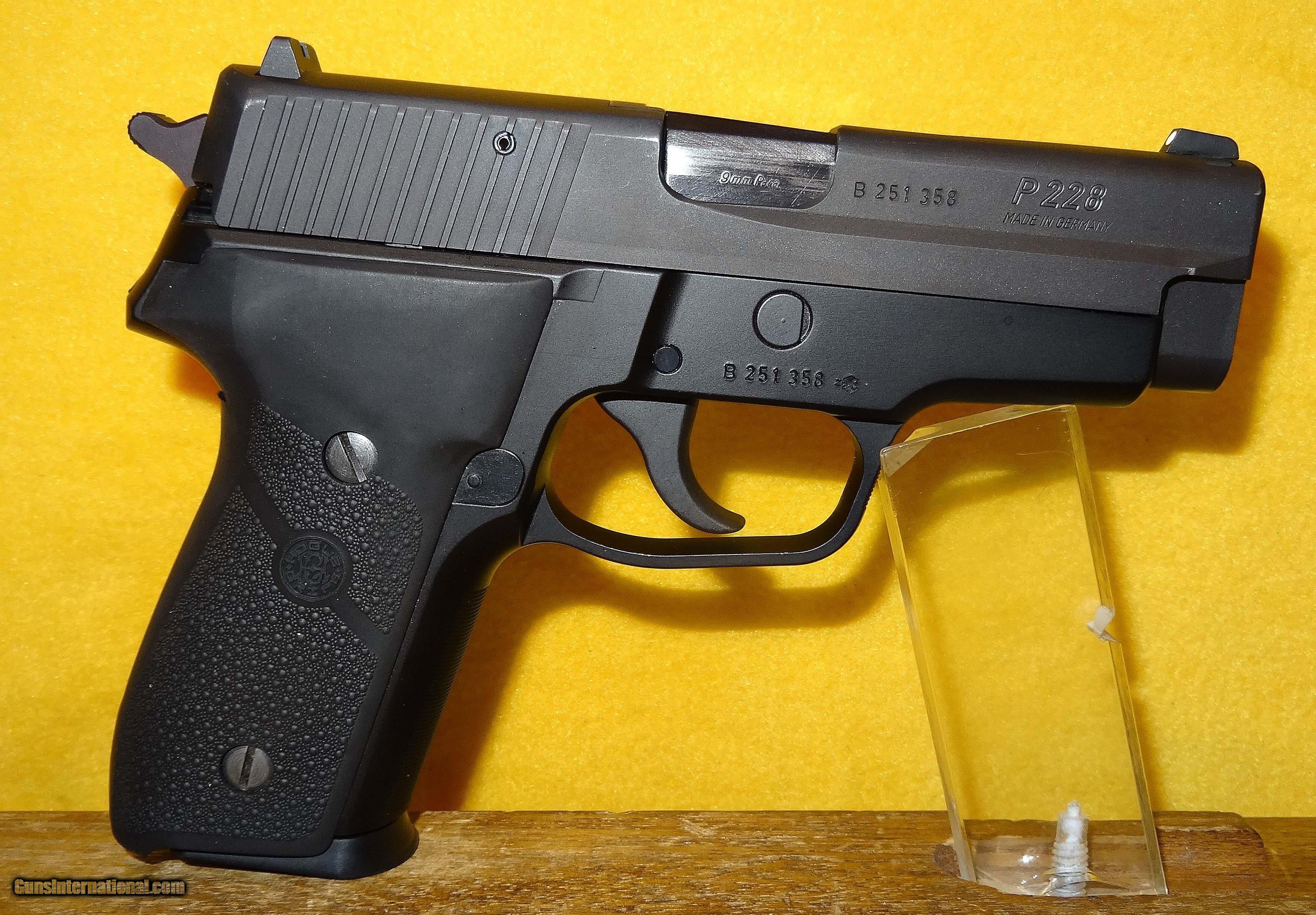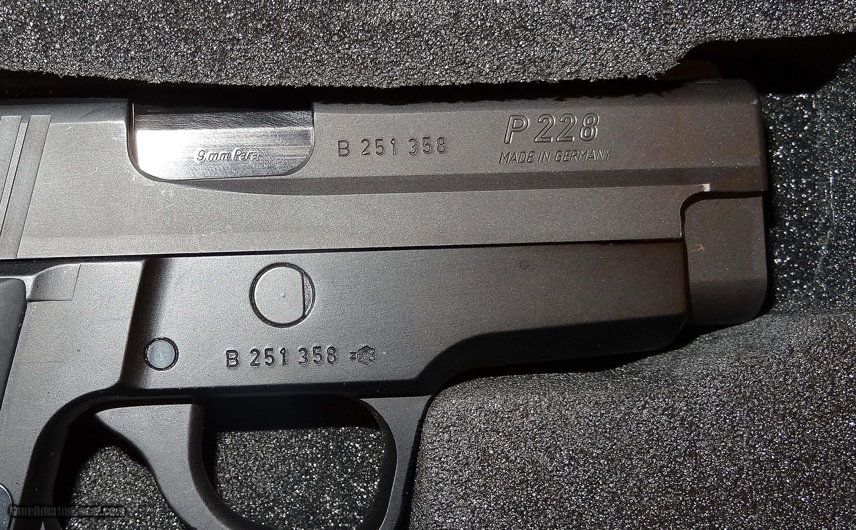 Description: SIG SAUER P228 IN 9MM CAL., WITH 3 3/4" BARREL. COLOR MATTE. CONDITION 98% LIKE NEW. SERIAL NUMBER B251358. SIG SAUER MODEL P228, MIRROR BORE, RUBBER GRIPS EXCELLENT, COMES WITH TWO FACTORY MAGAZINES, 98% OVERALL CONDITION, OUR STOCK # D795. SOLD |