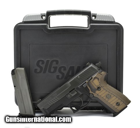 Sig Sauer P229 9mm caliber pistol. Compact model with G10 grips, night sights, box and extra magazine. Excellent condition.