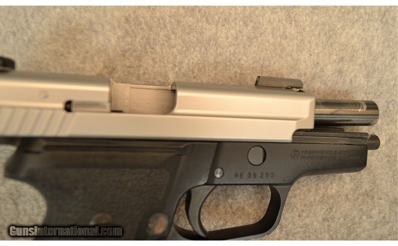 Description: SOLD Manufacturer: SN : AE 39 290 ; frame made in Germany Caliber Info: .40 S&W Metal Condition: Very Good, shows some finish wear and handling marks Bore Condition: Clean Barrels: 4 inch Triggers: Factory, Double Action/ Single Action with decocker Stock: Sig black plastic grips Weight: 34 oz Sights: 3-dot green fiber optics Extras: Non-factory plastic case with extra magazine Item Location: Greenville, SC |