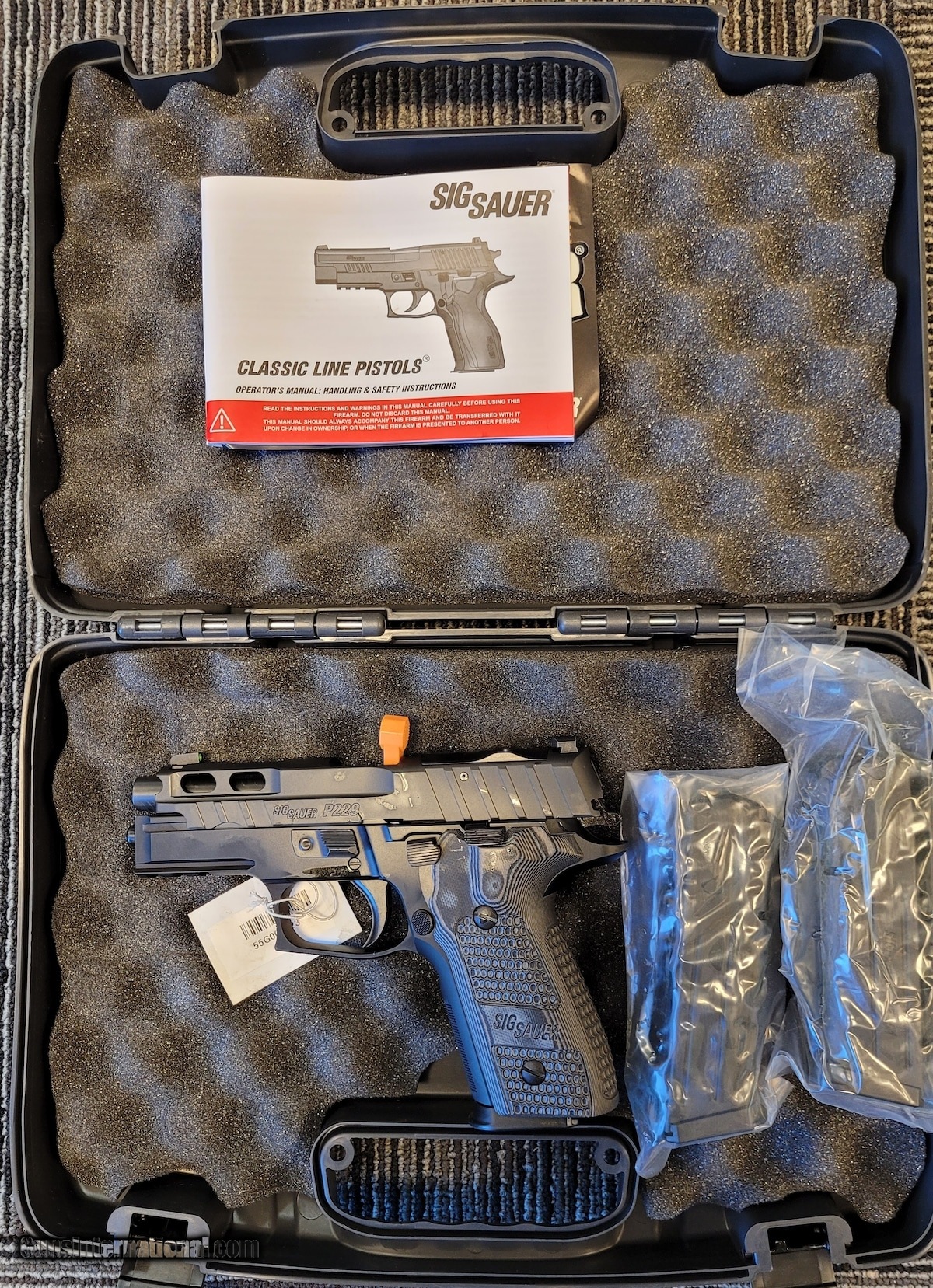 Description: Guns Listing ID: 548791 Unfired display model. Comes with 3 magazines and the factory case. SOLD Manufacturer: SIG SAUER Model: P229 Caliber Info: 9 MM Condition: Used - Non-Certified Barrels: 3.9" barrel Finish: BLACK |