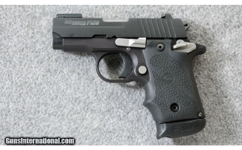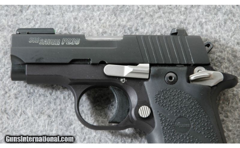 Description: Sig Sauer's single-action subcompact P238 Centerfire Pistols chambered in hard-hitting .380 feature anodized-alloy beavertail frames and rugged steel slides for lightweight dependability shot after shot. Measuring a mere 5.5" long and less than 4" high, they're easily concealable and comfortable to carry. SOLD Manufacturer: 2008 Caliber Info: .380acp Metal Condition: Very good with few scuff marks from holstering Bore Condition: Very good, bright and sharp Barrels: 2.7 inch barrel Weight: 18 oz. with empty magazine Sights: Siglite night sights Extras: Factory plastic case Item Location: Lehi, UT |