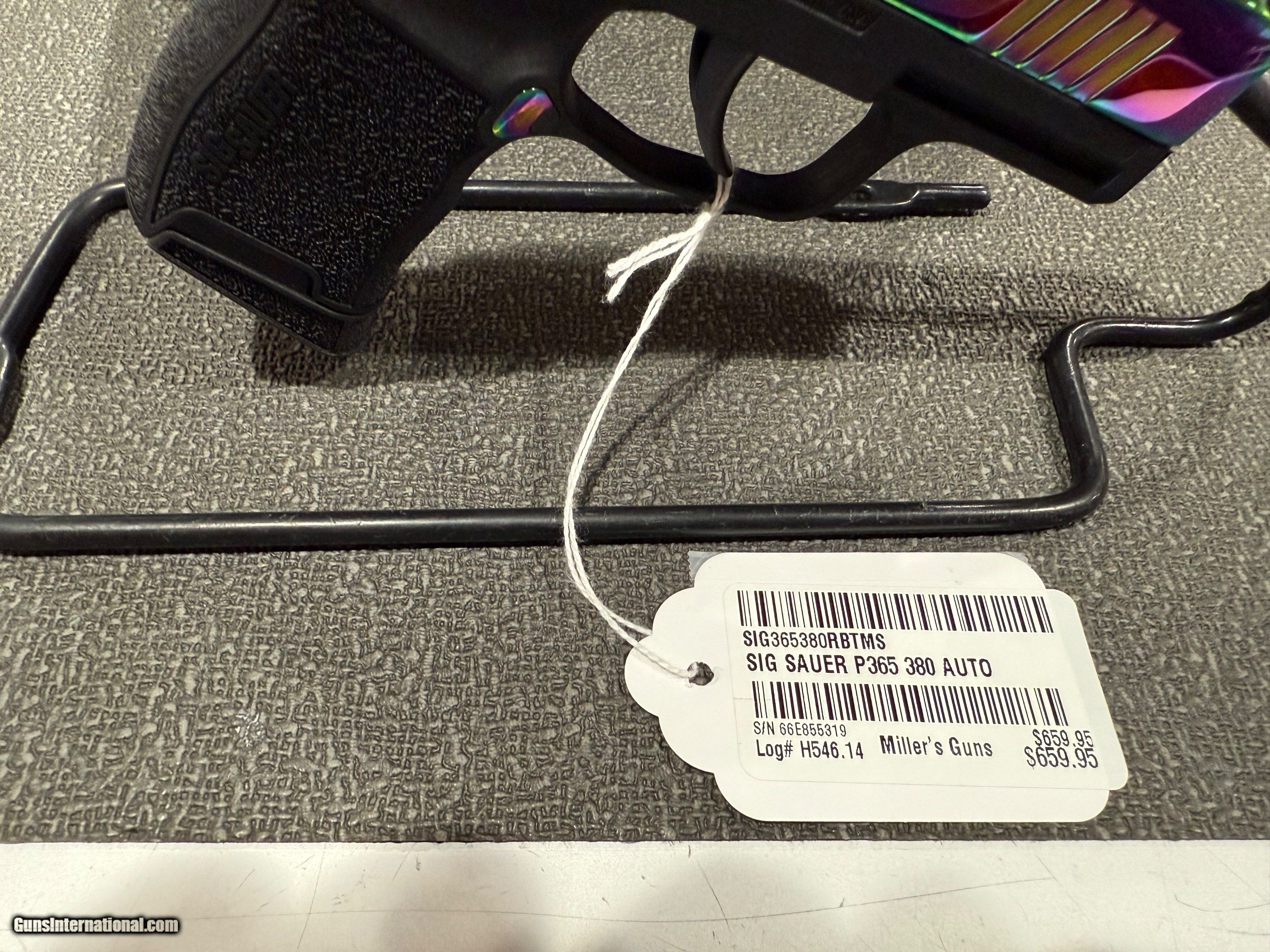 Description: Sig Sauer P365 Rainbow .380acp 10 round capacity (2) magazines included Optics ready slide Handgun Caliber: .380 ACP (9x17mm Browning Short) Manufacturer: Sig Sauer Model: P365-380 Rainbow Serial Number: 66E855319 Barrel Length: 3.1 Condition: NEW Price: $659.95 Contact Seller |