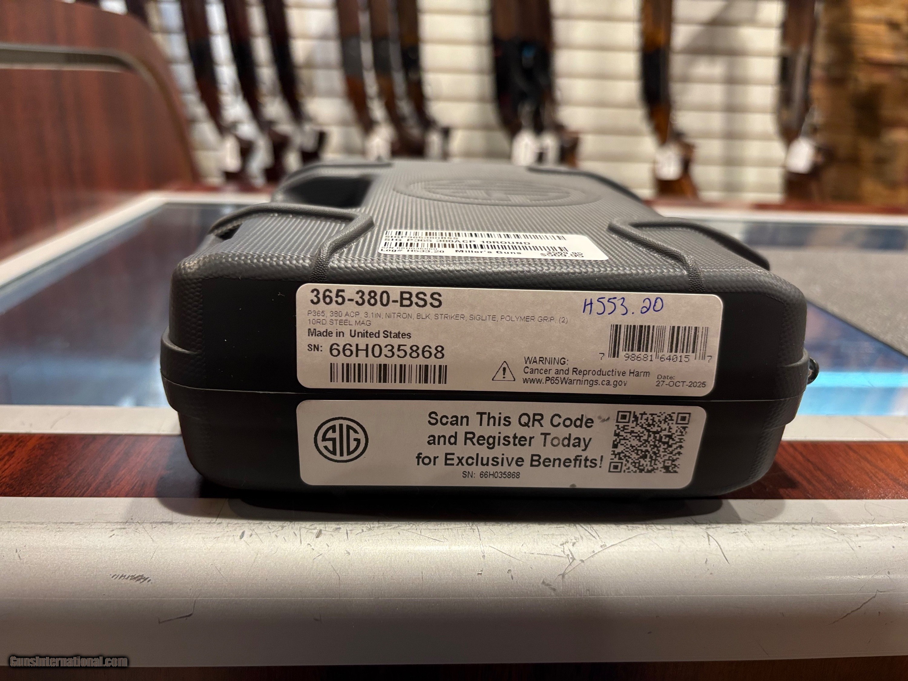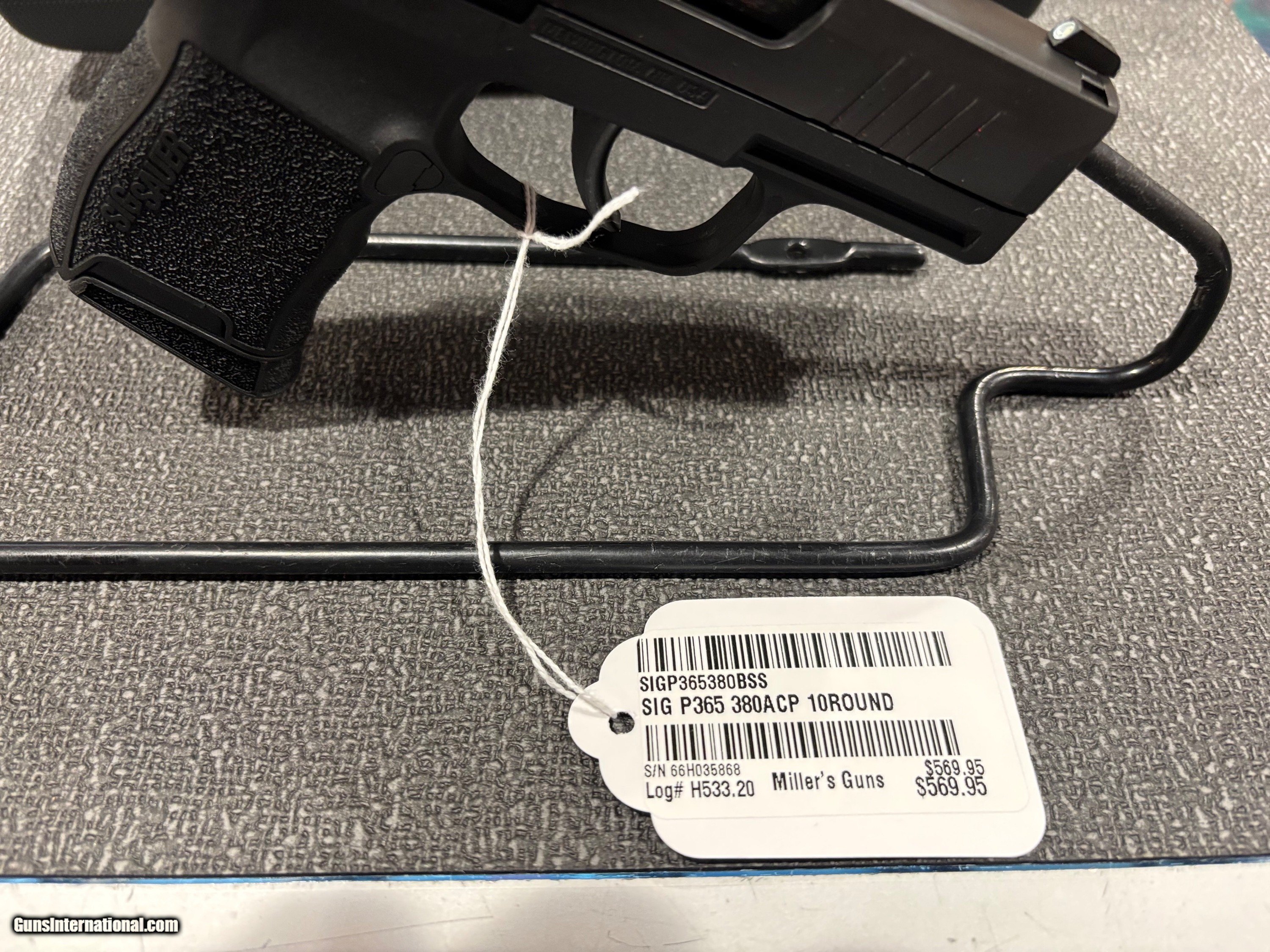 Description: Sig Sauer P365-380 .380acp 10 round capacity (2) magazines included Optics ready slide Handgun Caliber: .380 ACP (9x17mm Browning Short) Manufacturer: Sig Sauer Model: P365-380 Serial Number: 66H035868 Barrel Length: 3.1” Condition: NEW Price: $569.95 Contact Seller |
