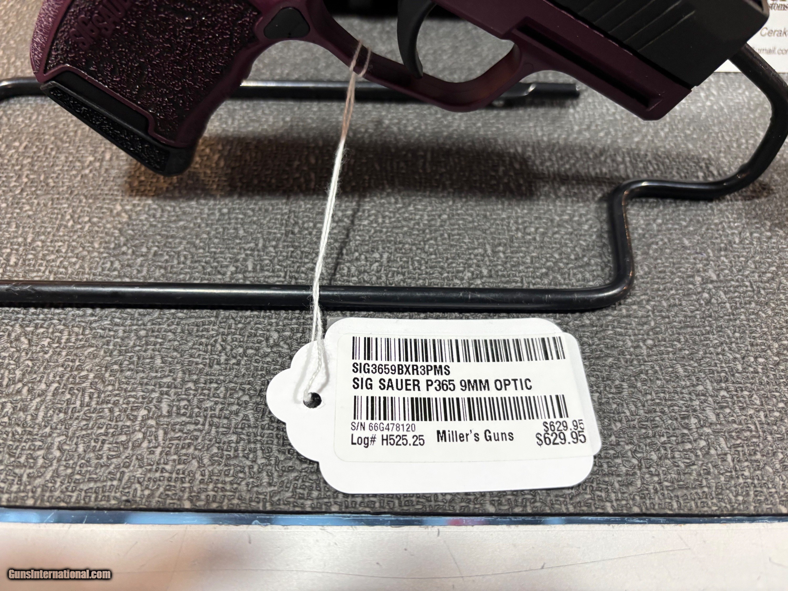 Description: Sig Sauer P365 Black Cherry 9mm Gladiator Customs Cerakote Manual safety 10 round capacity (2) magazines included Optics ready slide SOLD Handgun Caliber: 9x19mm Parabellum (9mm Luger, 9x19mm NATO) Manufacturer: Sig Sauer Model: P365 Serial Number: 66G478120 Barrel Length: 3.1 Condition: NEW |