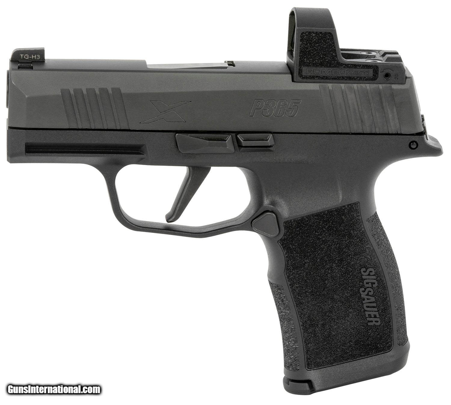 Description: Guns Listing ID: prod129178 The P365X is a revolutionary concealed carry pistol that gives you more capacity, more concealability and more capability. It‚‚s the one gun you can carry every day of the year. This P365 features a patented modified double-stack magazine capable of full-size capacity. Its ergonomic design makes it more shootable than the typical pocket-sized pistols with a clean, crisp trigger pull you expect from a Sig. These features, along with the signature XSeries flat trigger and XSeries grip module, all come standard with a ROMEOZero 3 MOA optic installed and ready to go right out of the box. See More P365 Models. SOLD Manufacturer: SIG SAUER Model: P365X ROMEOZero Caliber Info: 9MM LUGER (9X19 PARA) Condition: new Barrels: 3.1 BARREL |