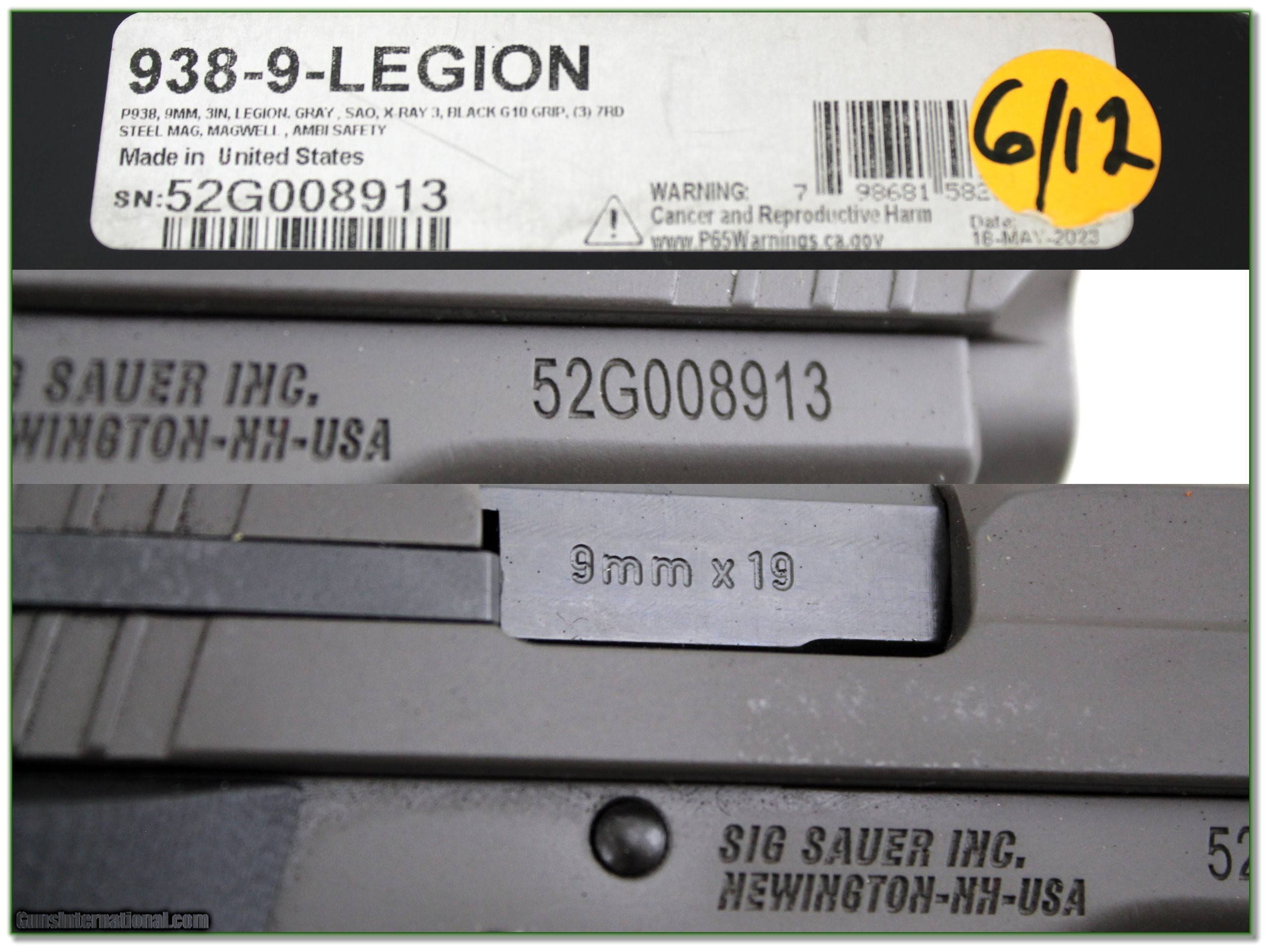 Sig Sauer P938 Legion 9mm Compact in case 3 Mags and holster