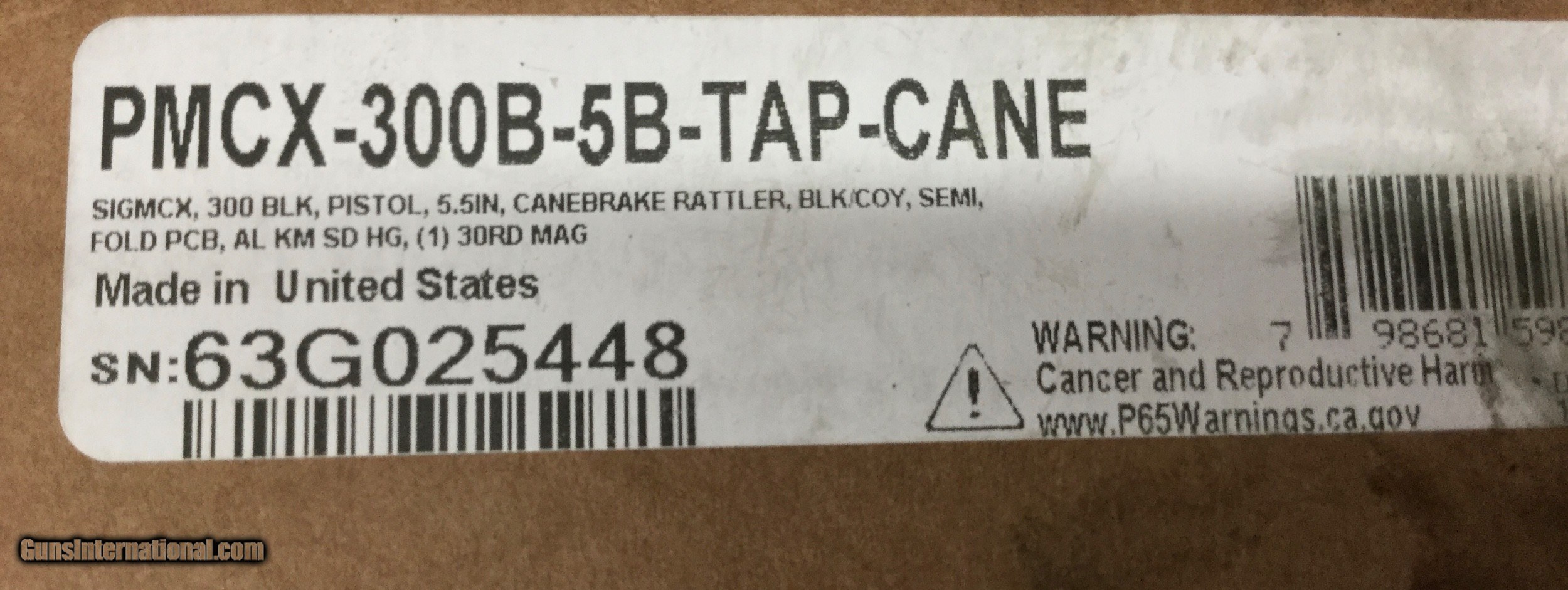 Description: Used but Like new in box. Only factory test fired. Sig Sauer sku PMCX300B5BTAPCANE MCX Rattler Canebrake 300 Blackout 5.50" 30+1 Coyote Cerakote Black Polymer PCB Folding Stock. $2295.00 plus $45.00 shipped and insured to your FFL dealer. Add 3% for card payments. "The MCX Rattler Canebrake is the newest addition to the MCX family. It was created for those that desire the MCX as a suppressed system, and eliminates the need to purchase additional components to do so. It comes with a factory installed inert training device, making it operable right out of the box while NFA paperwork and waiting periods are completed, and then is easily convertible to run suppressed. The MCX Rattler Canebrake comes as a suppressor ready platform with an SD handguard and inert training device. Additional features of the MCX Rattler Canebrake include a 2-stage flat-blade match trigger, Cerakote E190 finished upper and lower, a folding coyote-tan PCB, and comes with one 30-round polymer Magpul magazine." ~~Sports South SOLD |