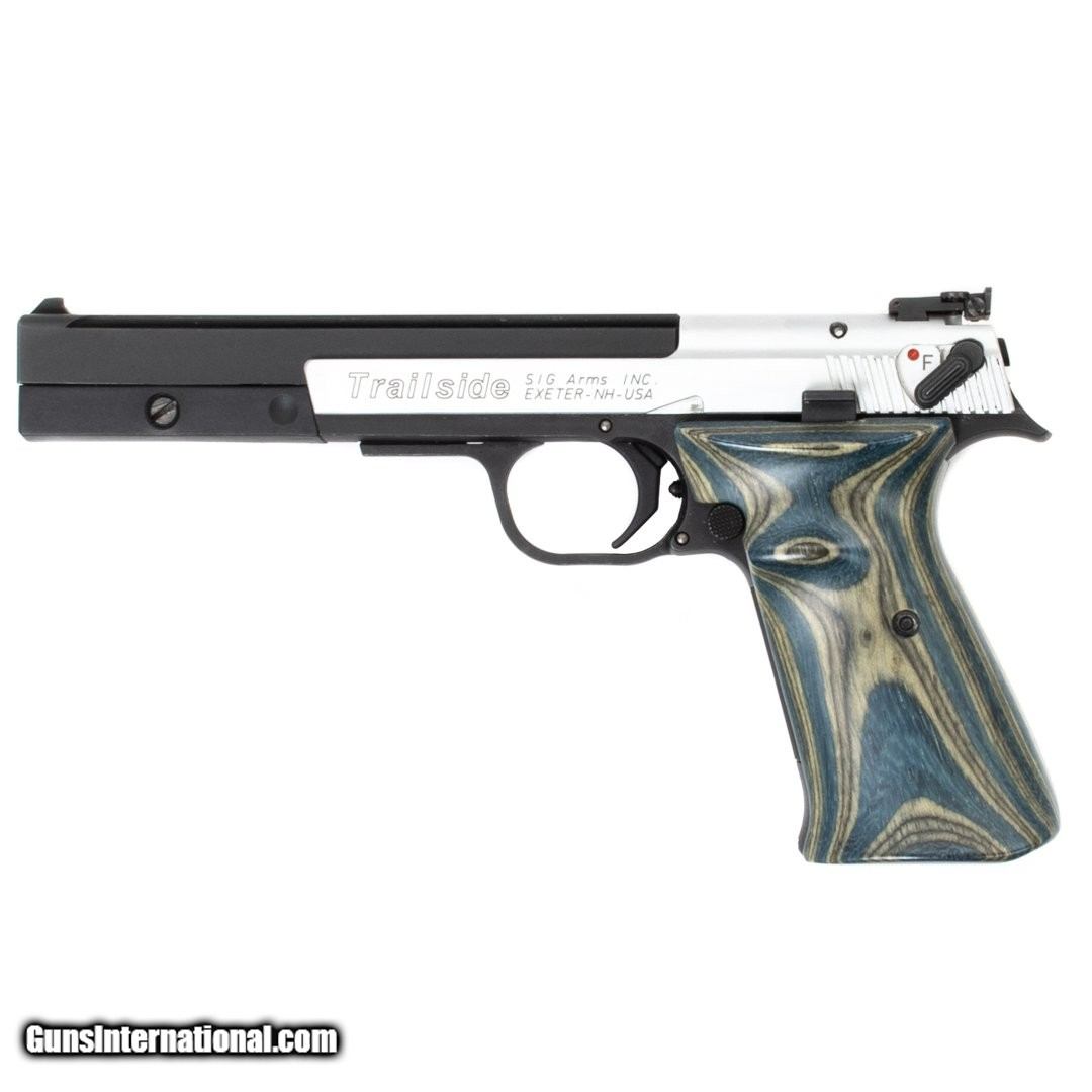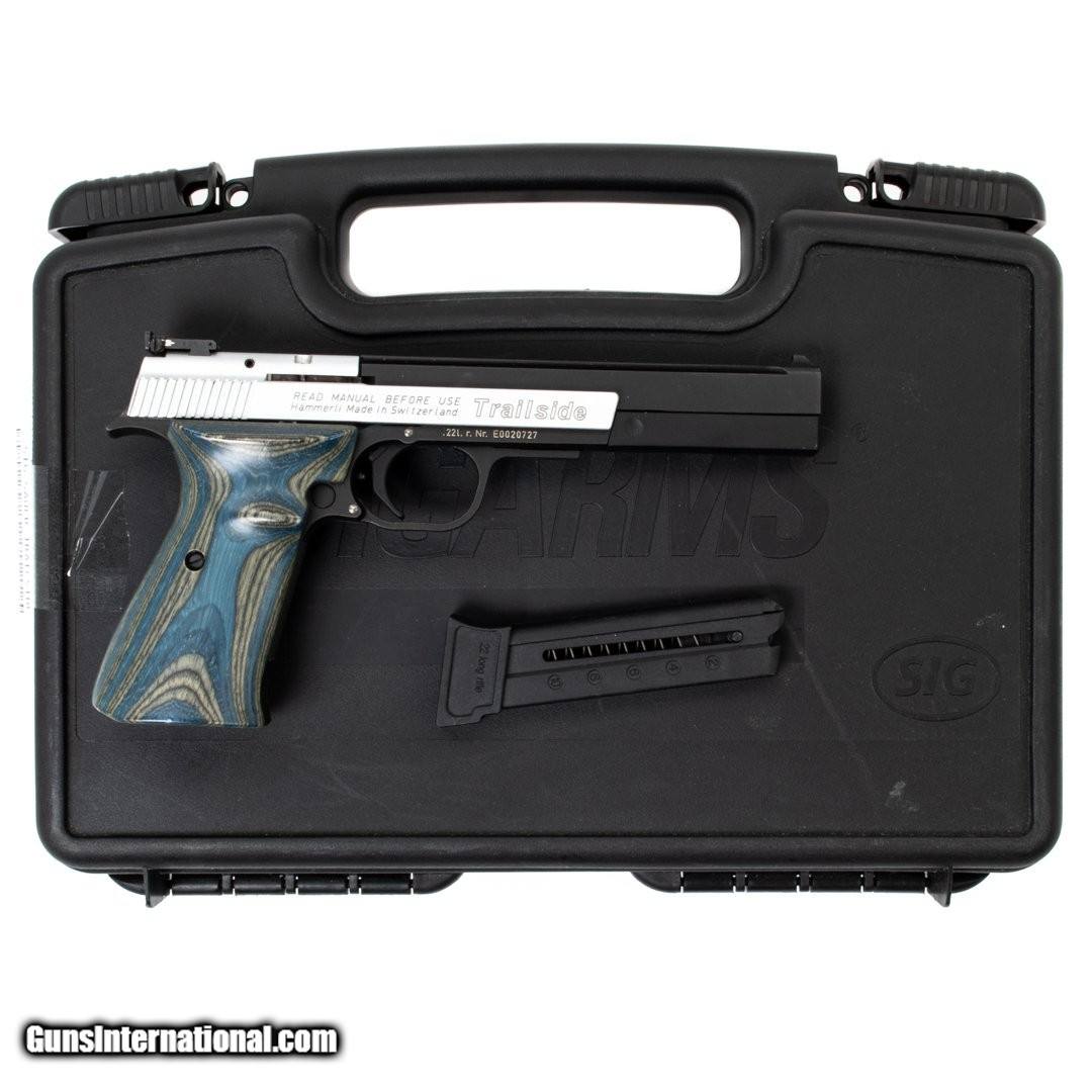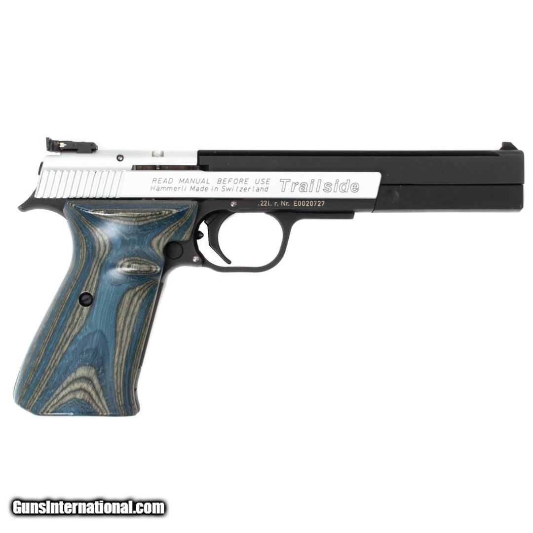 Description: Guns Listing ID: 560449 This Hammerli Trailside features blue/gray/green laminate wood grips. Purchase includes the original case, manual, and two 10-round magazines. Get the best bang for your buck when you get a Certified Used Firearm . When you see the Certified Used stamp on any of our firearms, you can be confident that you‚re getting exactly what you want – a gun only in very good to excellent condition and held to the highest quality standard. All Certified Used Guns come with a ‚no questions asked‚ return policy . SOLD Manufacturer: SIG SAUER Model: TRAILSIDE Caliber Info: .22 LR Condition: Used - Certified Barrels: 6.00 BARREL Action: SEMI AUTOMATIC Finish: black & silver Weight: 1.8 |