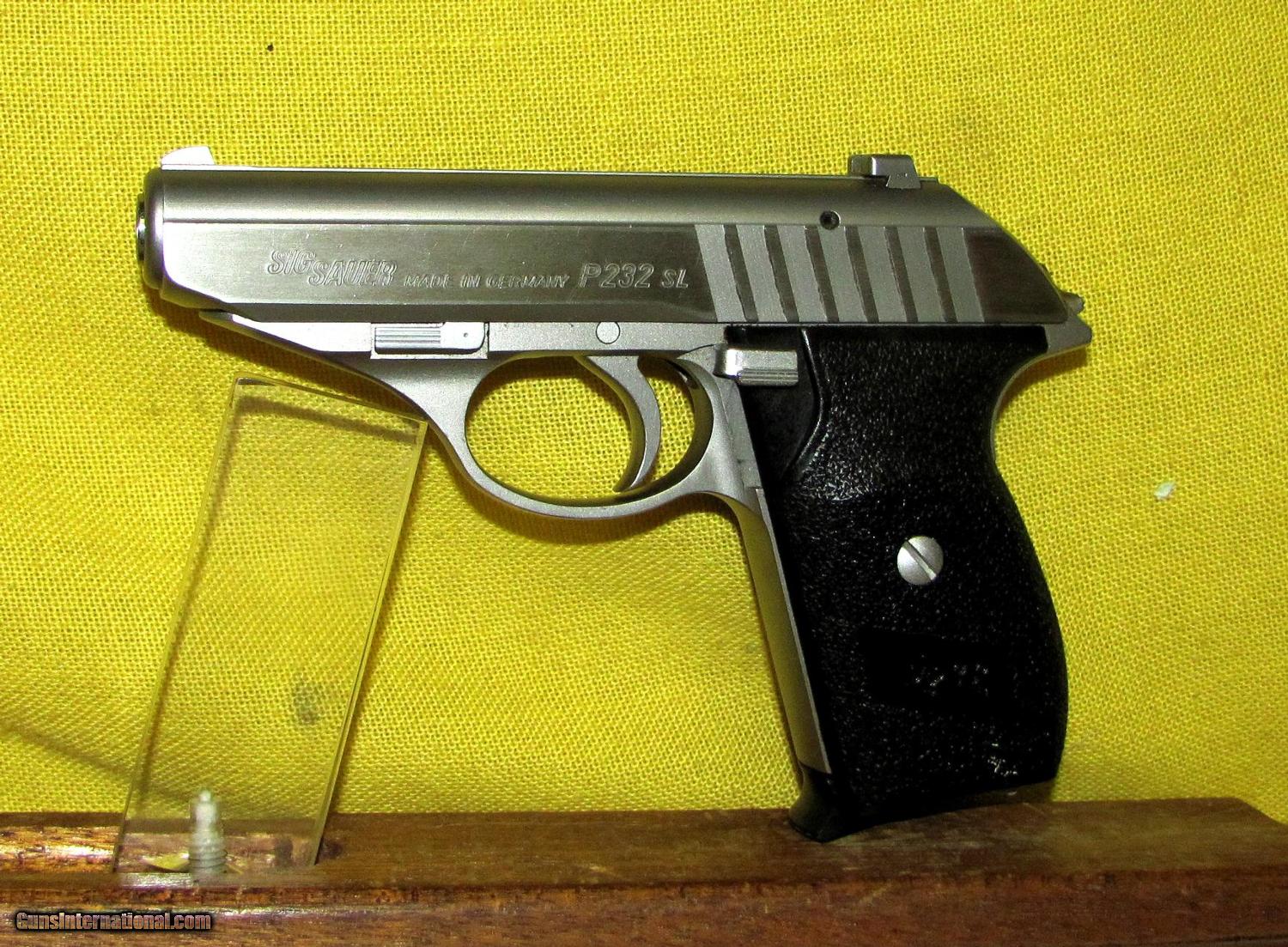 Description: SIGARMS model 232 SL in .380 ACP CAL., with 3 1/4" barrel. Color STAINLESS STEEL. SIGARMS MOSEL 232 SL, MIRROR BORE, GRIPS EXCELLENT, FACTORY FINISH LIKE NEW, ORIGINAL BOX, COMES WITH ONE SEVEN ROUND FACTORY MAGAZINE. OUR NEW STOCK # D31364 Condition 98%. Serial number S258213. SOLD |