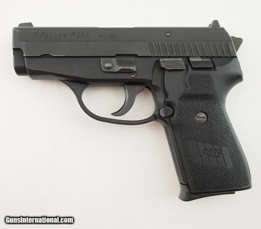 Description: SigSauer P-239 9MM, 3 1/2" bbl, shiny bore, good rifling, black finish, one dot rear dovetail sight, white dot front dovetail sight, de-cocker, one 8 round magazine, and black textured P239 grips. Add 3% for Credit Card Shipping $25.00 SOLD |