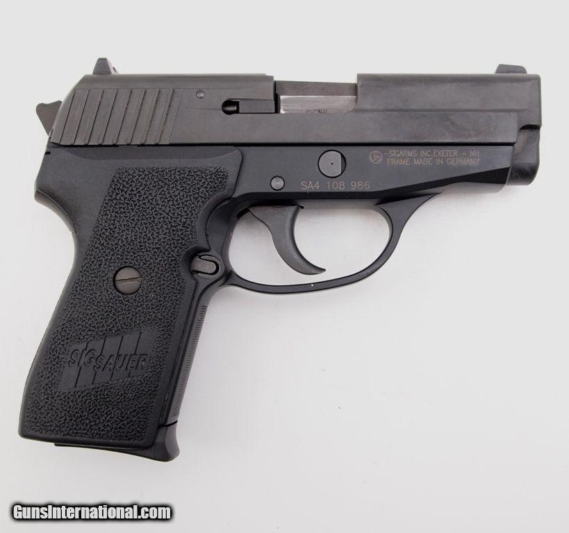 Description: SIGSAUER P-239 WBOX .40 S&W, 3 3/8" bbl, shiny bore, good rifling, black finish, white dot sights, and black textured grips. Comes with 4 magazines, owner's manual, and hard case. Add 3% for Credit Card Shipping $25.00 SOLD |