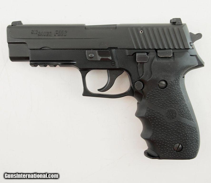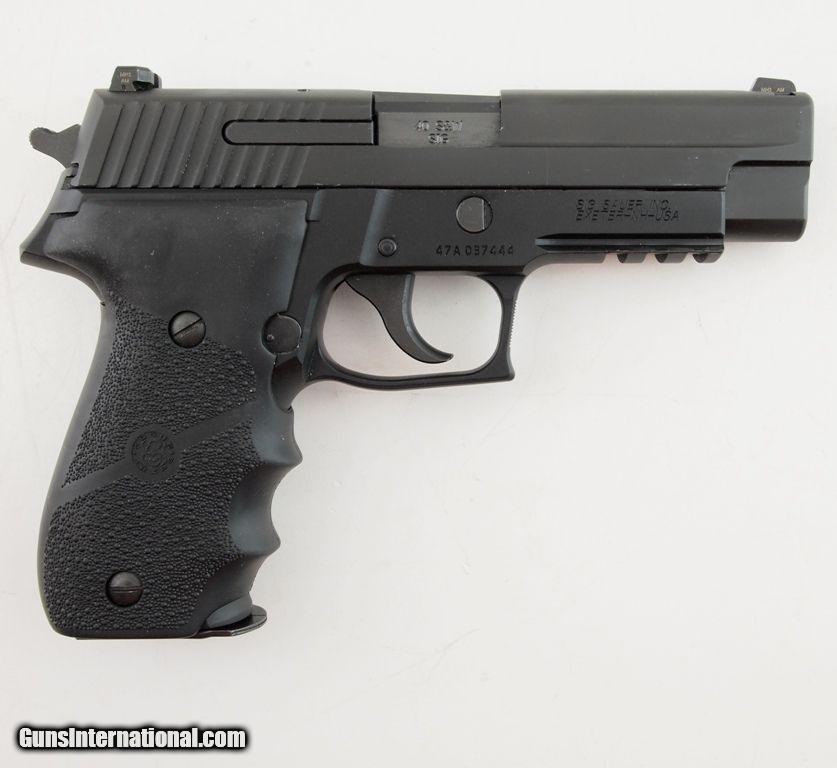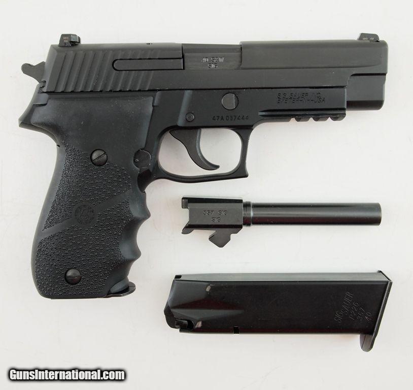 Description: SigSauer P226-40-BSS WBox .40 S&W Barrel & .357 Sig Barrel, 4 1/4" bbl, bright shiny bore, good rifling, night sights, black finish, two 12 round magazines, and black textured Hogue grips. Add 3% for Credit Card Shipping $25.00 SOLD |