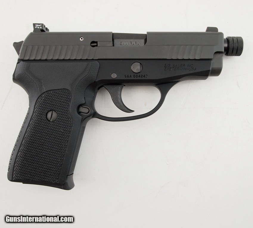 Description: SigSauer P239 Tactical 9X19, 4" threaded bbl, excellent bore, night sights, black finish, de-cocker, one 8 round magazine, and very nice after market black checkered grips. This is a super clean gun. Add 3% for Credit Card Shipping $25.00 SOLD |