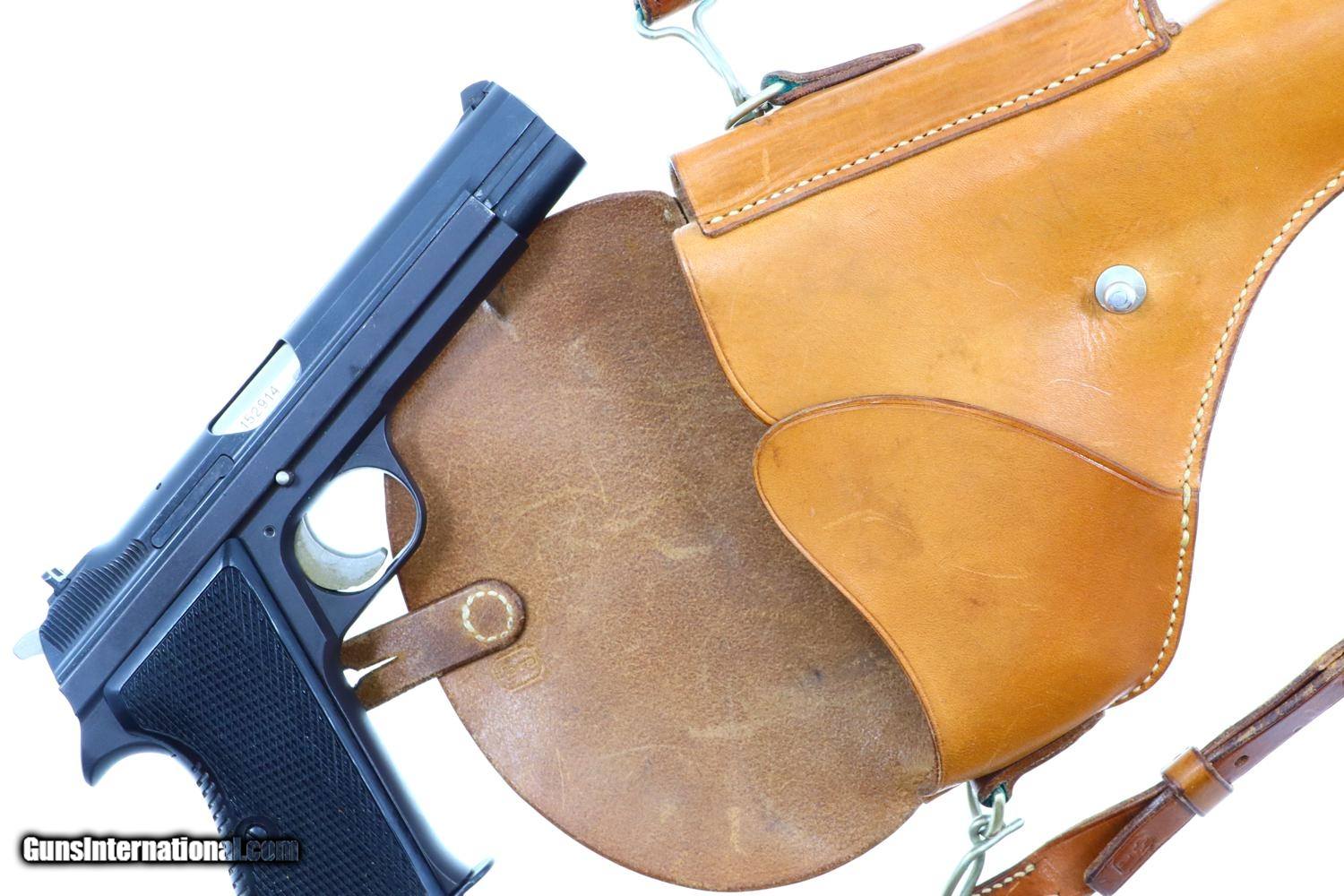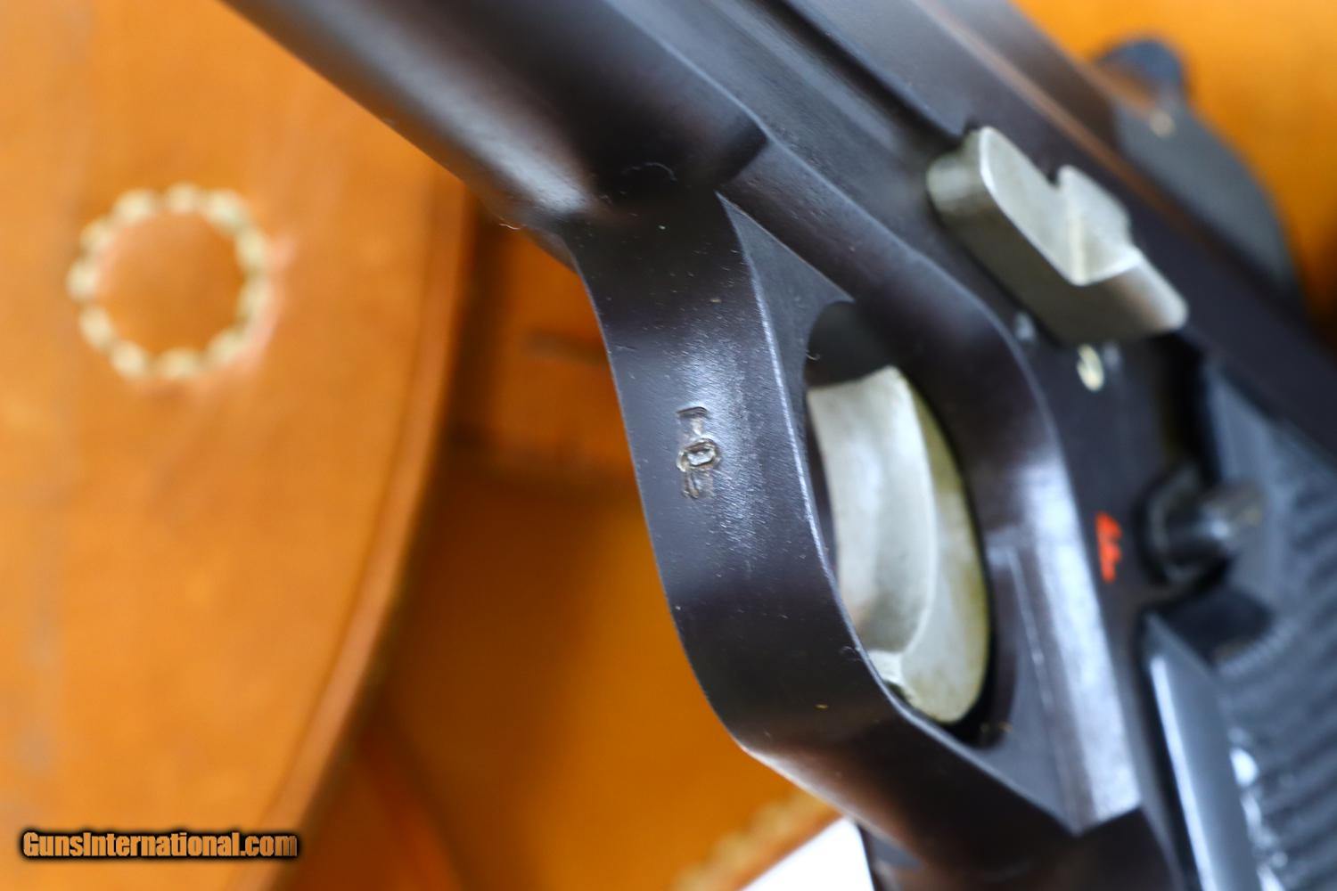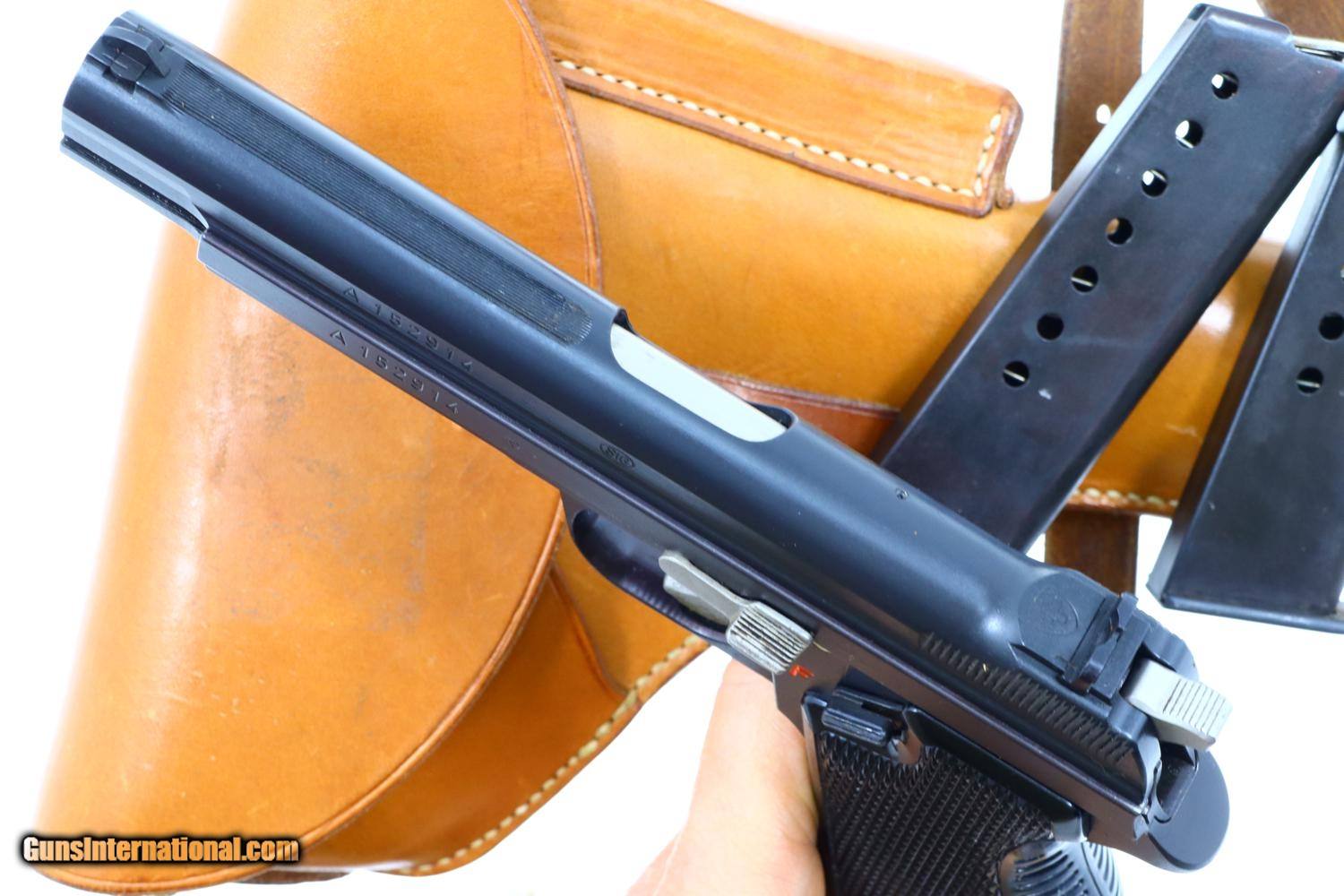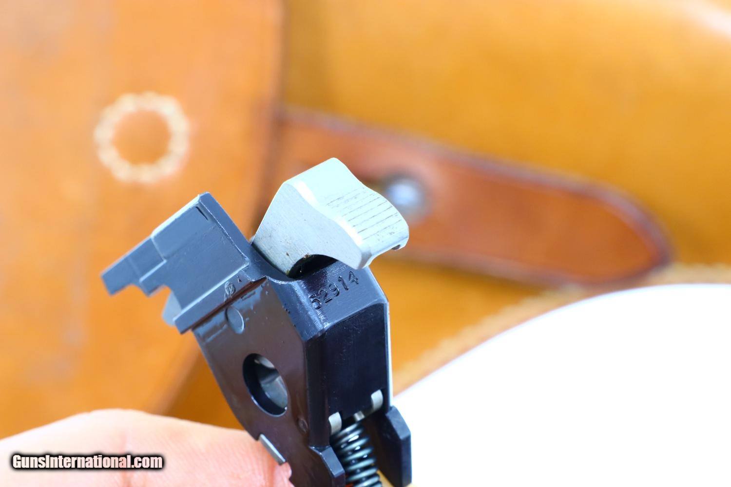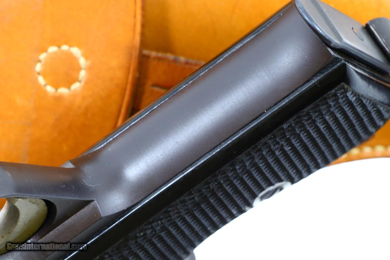 99+% original finish with only minimal wear. Comparable condition grips and correct matte finish magazines. Bright bore with sharp rifling. Perfect manual mechanics. Holster and strap in same impeccable quality. An extraordinary rig that would be virtually impossible to improve upon!