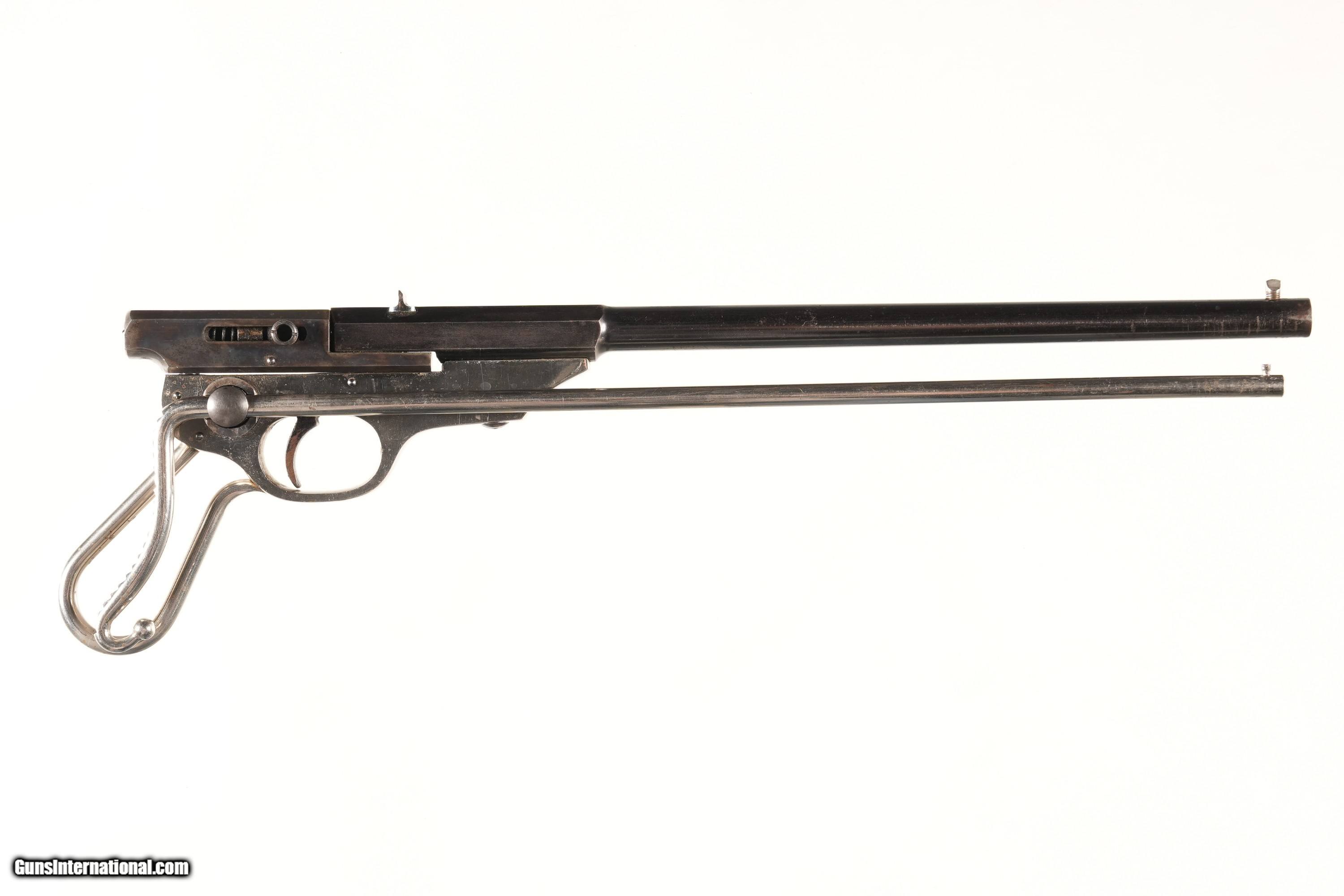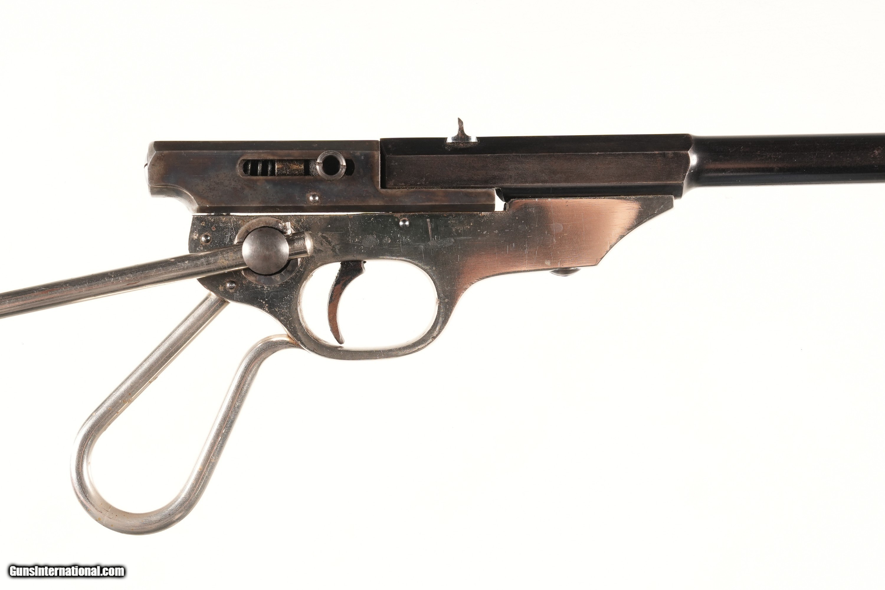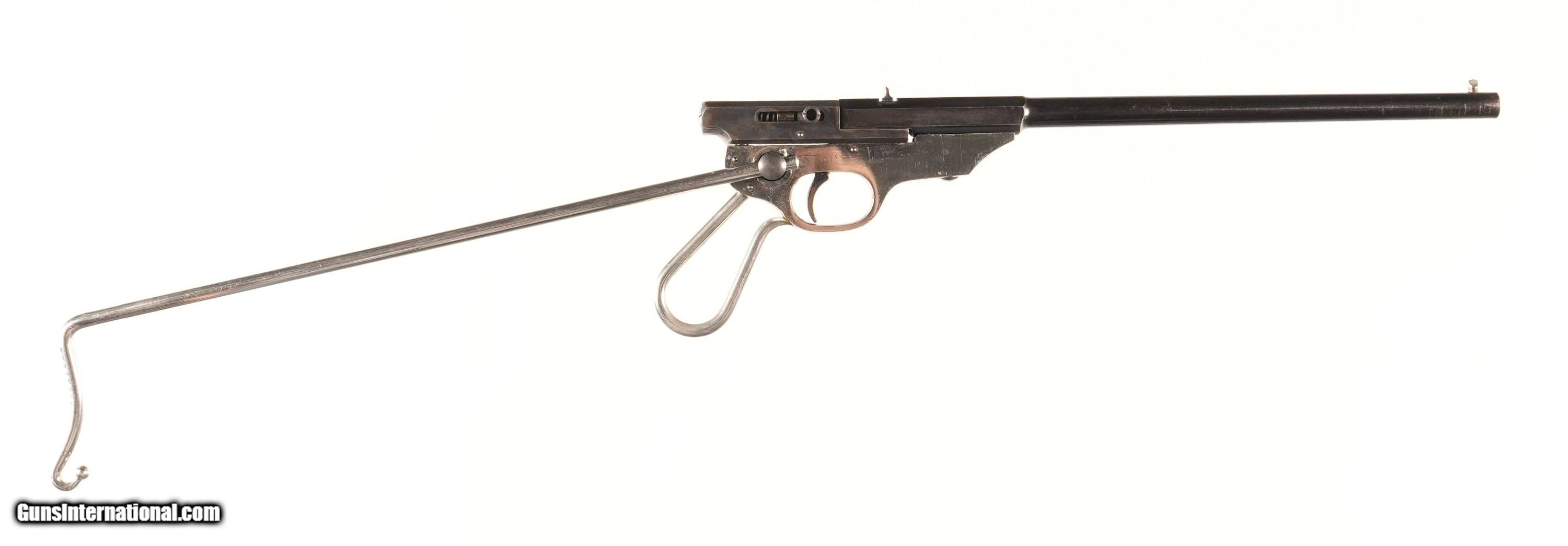 Description: Scarce Quackenbush Bicycle rifle with retractable wire stock. 12" Bbl cal, 22 LR with nickel finish receiver &blue finished Bbl, Case color finished swiveling breech, Mfd 1896-1916 and rarely found in fine condition, Condition, Very fine with excellent bright bore with some darkness. 80% case color on breech. 60% high polish blue on Bbl w/ balance toned. Nickel finish is excellent and mechanically fine. A superb example. • Free Shipping, No Credit Card Fees. • Lay-a-way available for this firearm. • 1/3 Down, a 1/3 in 30 Days, 1/3 in 60 Days. SOLD Curio/Relic: Yes Manufacturer: Quackenbush Model: Bicycle Serial Number: NSN Barrel Length: 12 |
