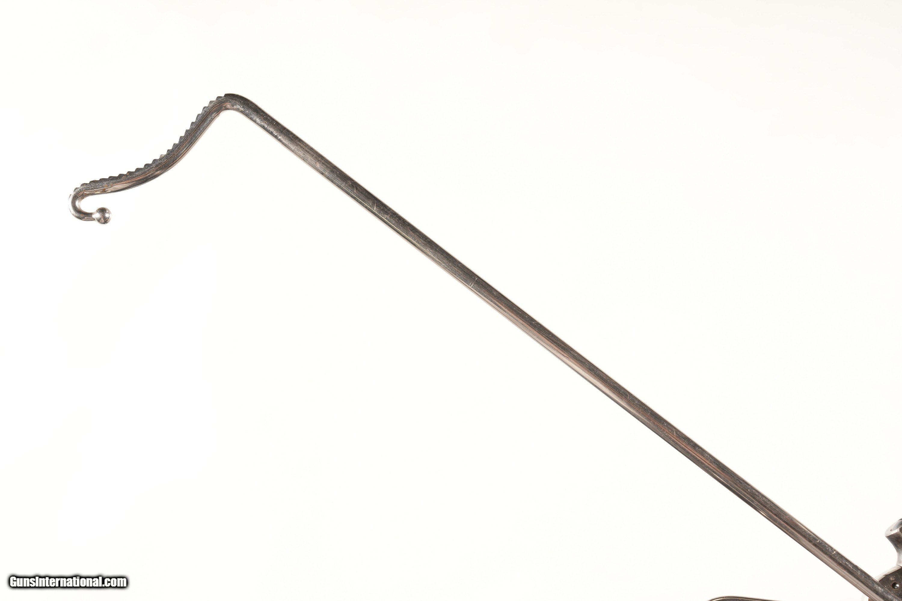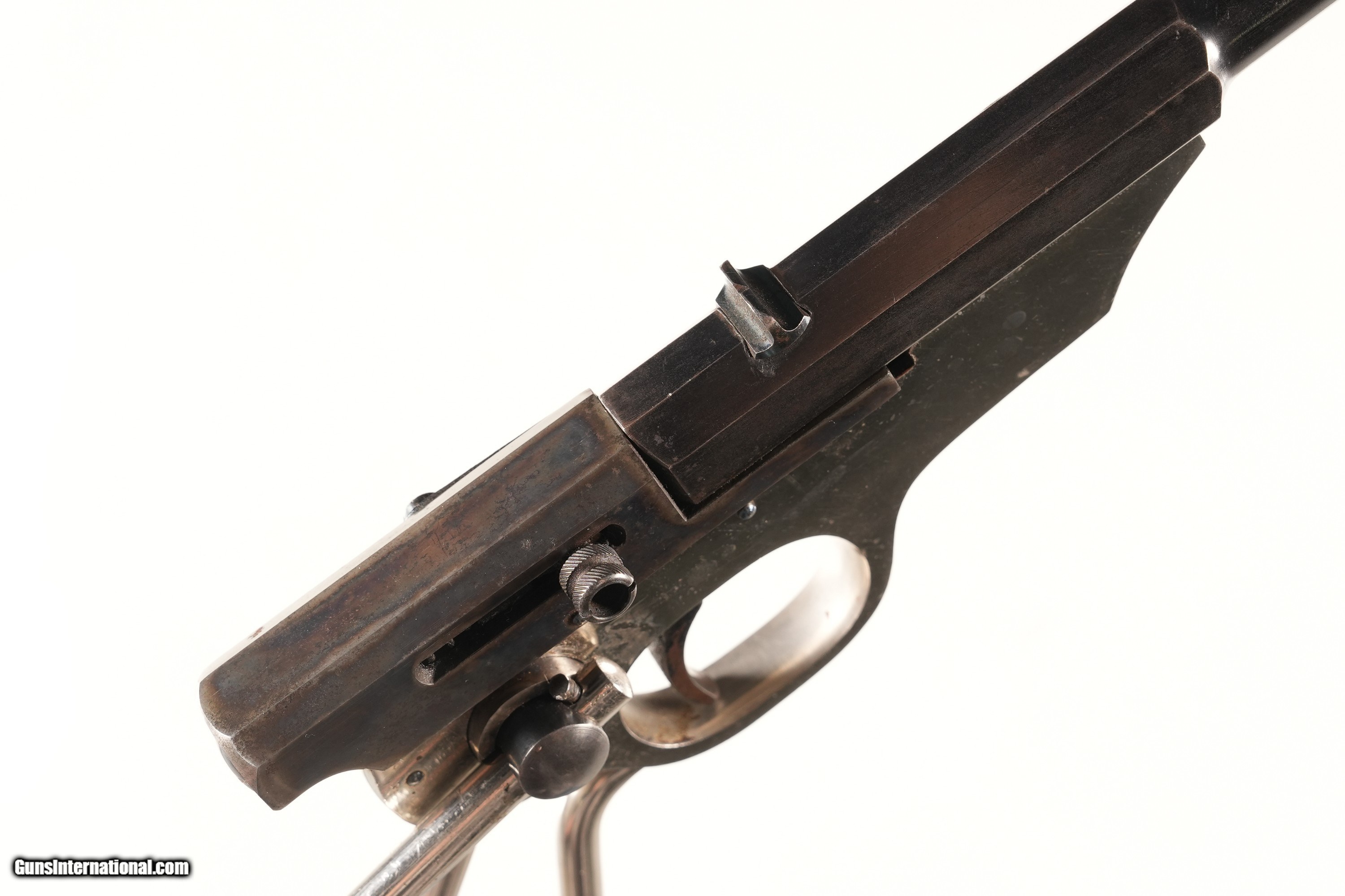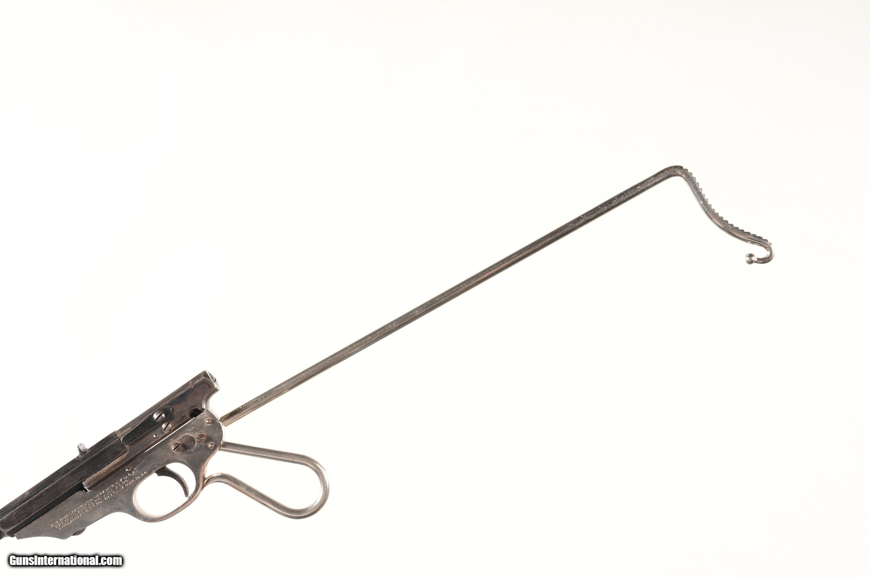 Description: Scarce Quackenbush Bicycle rifle with retractable wire stock. 12" Bbl cal, 22 LR with nickel finish receiver &blue finished Bbl, Case color finished swiveling breech, Mfd 1896-1916 and rarely found in fine condition, Condition, Very fine with excellent bright bore with some darkness. 80% case color on breech. 60% high polish blue on Bbl w/ balance toned. Nickel finish is excellent and mechanically fine. A superb example. • Free Shipping, No Credit Card Fees. • Lay-a-way available for this firearm. • 1/3 Down, a 1/3 in 30 Days, 1/3 in 60 Days. SOLD Curio/Relic: Yes Manufacturer: Quackenbush Model: Bicycle Serial Number: NSN Barrel Length: 12 |
